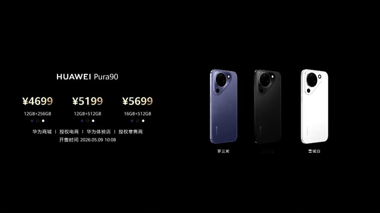 华为Pura 90 全系列价格来了!华为 Pura 90 标准版12GB+256GB 4699 元12GB+512GB 5199 元16GB+512GB 5699 元