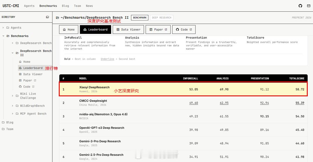 小艺在USTC-CMI的 DeepResearch Bench Ⅱ 深度研究基准测试中超过 OpenAI,这实力是真的强!鸿蒙电脑小艺超OpenAI排第一