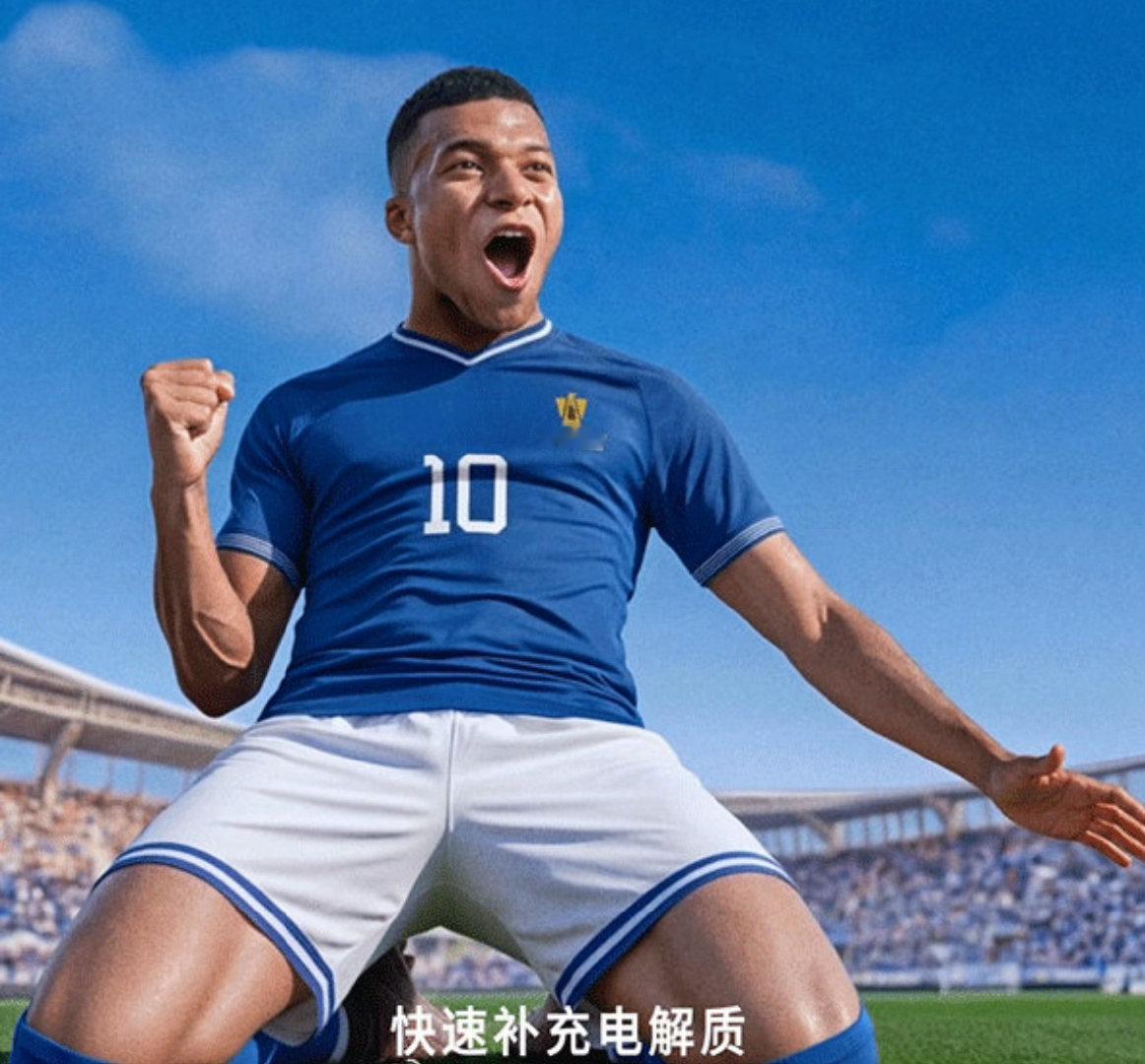 从品牌发布的宣传物料中可以看到,姆巴佩身着国家队10号球衣,在绿茵场上完成射门、庆祝等标志性动作,也有手持补水啦电解质水补水的场景,生动展现了运动前后科学补水的重要性。无论是运动前小口补水为身体充电,还是运动中及时补充水分与电解质,亦或是运动后快速恢复状态,都与姆巴佩的赛场需求高度契合,也让“补水啦”“快速补充电解质”的产品定位深入人心。
