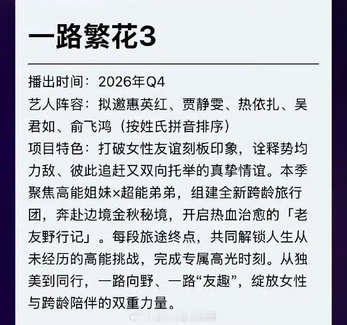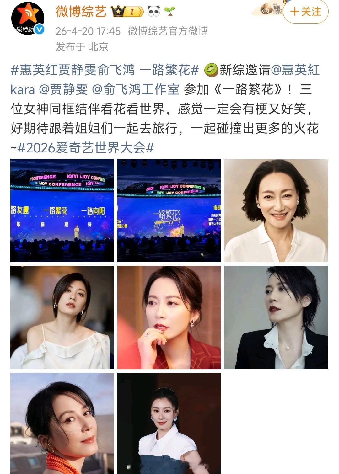 惠英红贾静雯俞飞鸿 一路繁花 我的天呐!这是真的吗?各位捞鱼们来说说🥝新综邀请参加《一路繁花》!三位女神同框结伴看花看世界俞飞鸿 2026爱奇艺世界大会