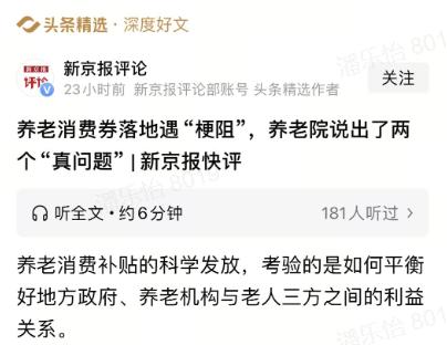 比如一二线城市养老院月费动辄五千以上,八百块的消费券,根本不足以让老人下决心入住。