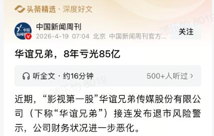 太唏嘘了!曾经的“影视第一股”华谊兄弟,8年时间竟亏光85亿,如今被逼到退市边缘,连重整都提上了日程。