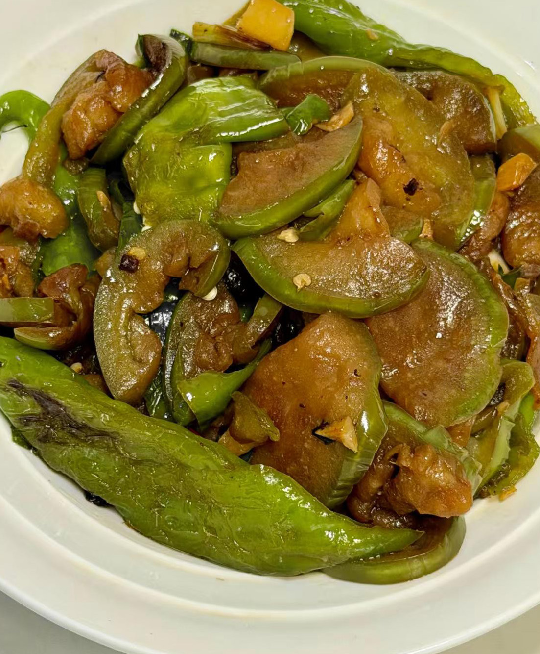 3️⃣青椒擂茄子软嫩的茄子搭配焦香的青椒,家常又下饭。茄子腌一下挤干水分,和干煸出虎皮的青椒一起炒,加点豆豉提味,软糯入味,配粥配饭都合适。