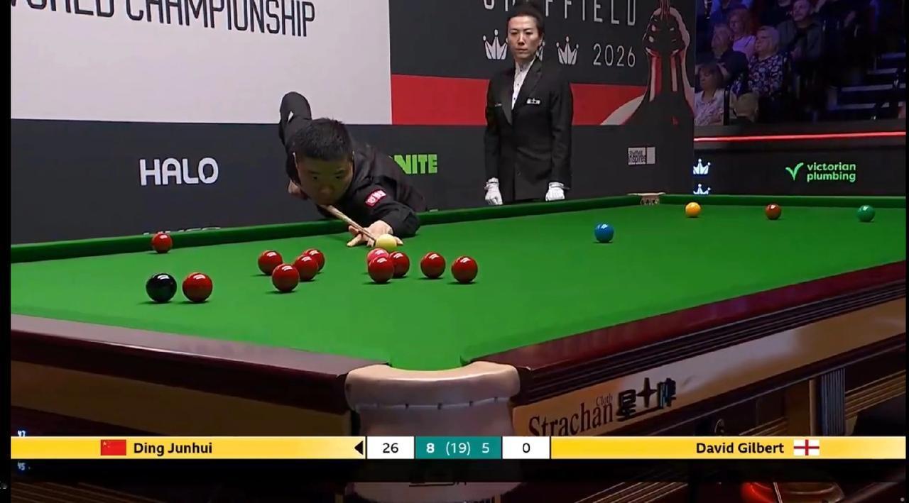 2026斯诺克世锦赛,世界排名第16的种子选手丁俊晖迎战排名第25的土豆哥大卫-吉尔伯特。昨晚第一阶段比赛丁俊晖顺风顺水取得了7:2的巨大优势。