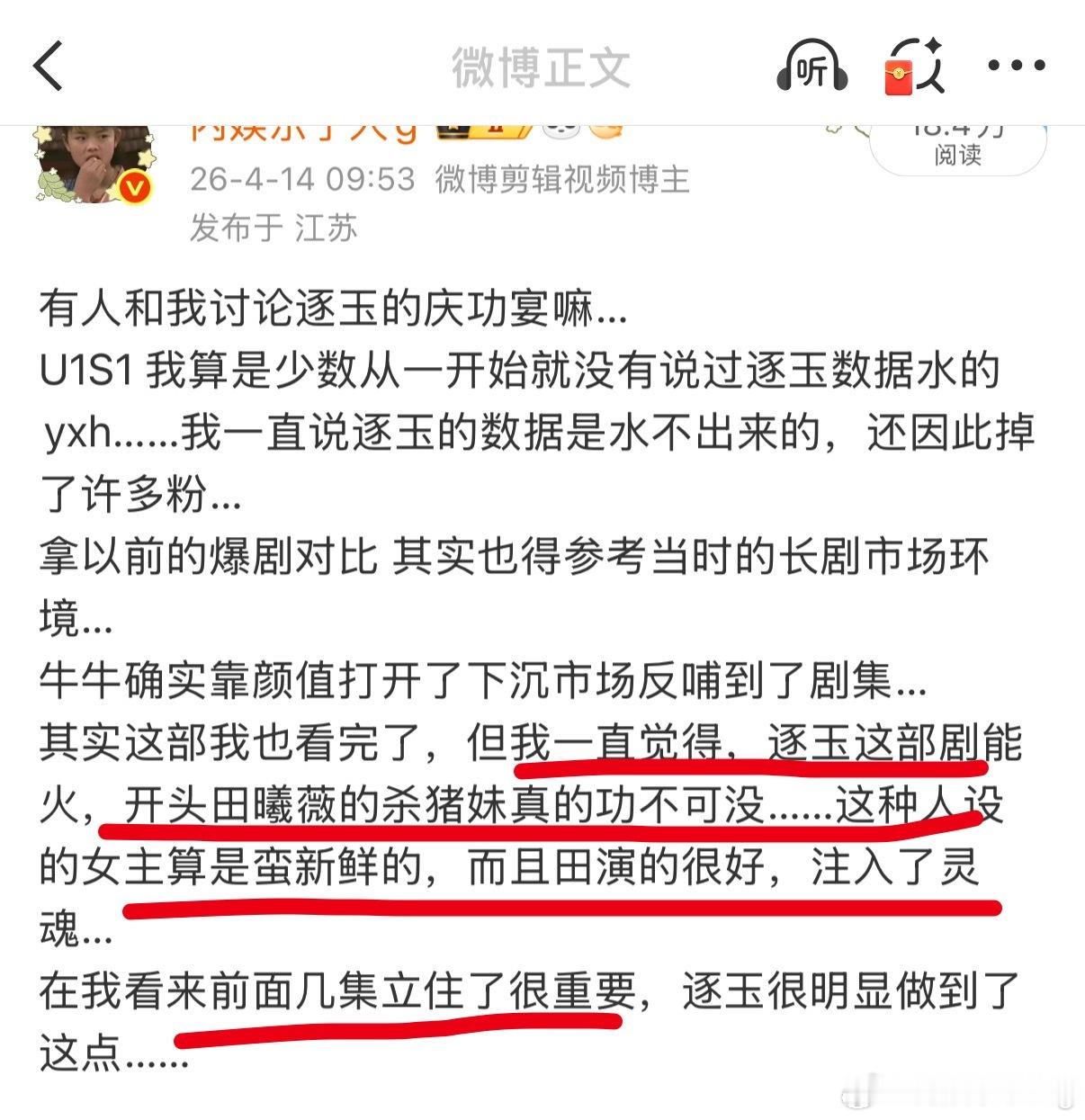 逐玉的成功在于第三集续看率95%好巧…前几集田曦薇的戏份很多…我一直说田曦薇作为