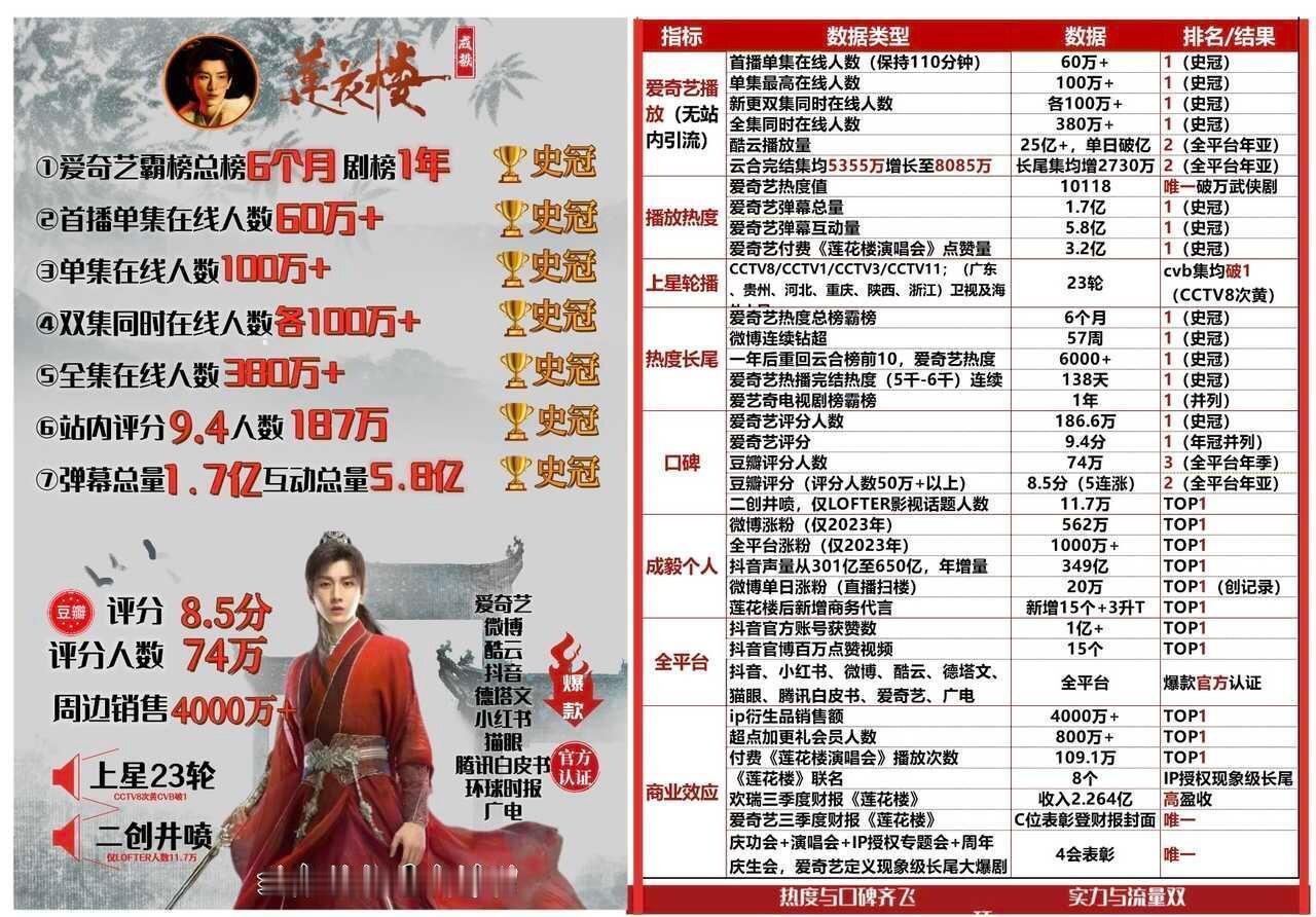 🗡️爱奇艺top10剧集没有莲花楼武侠剧里的一股清流,制作与演技双双在线,缺席榜单真的太可惜