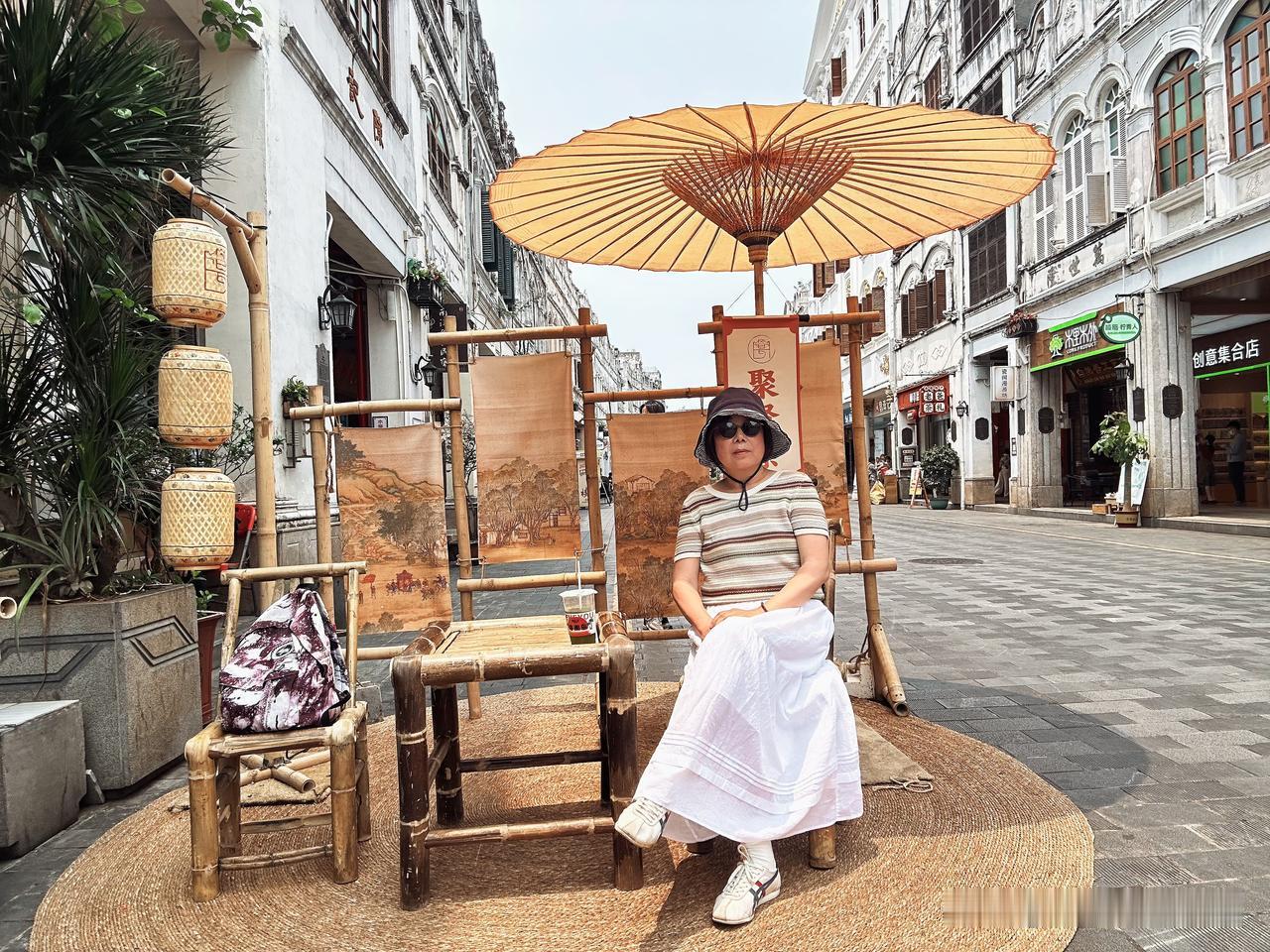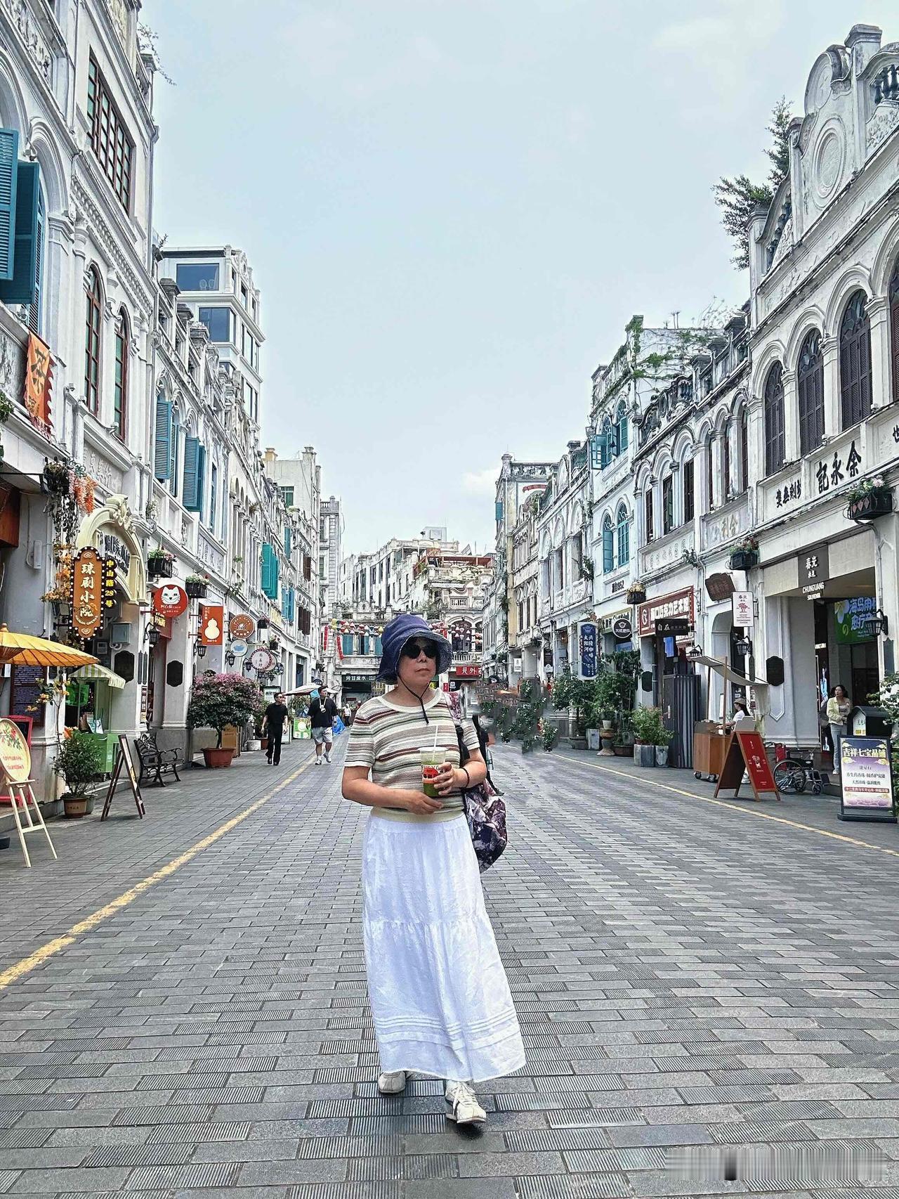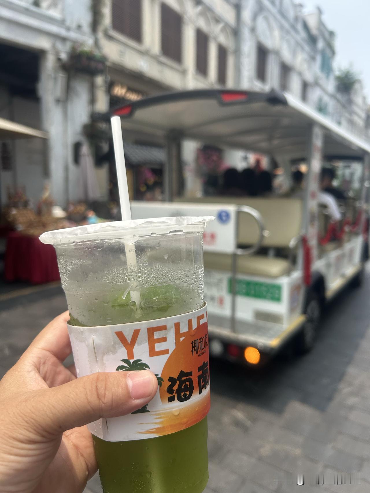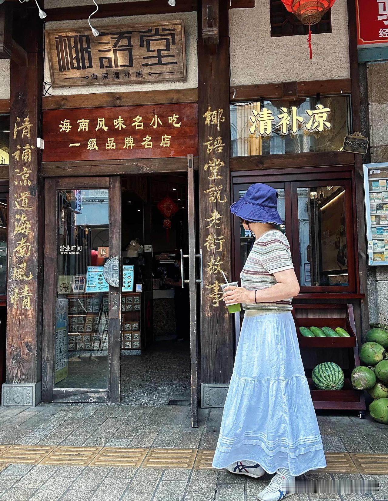 海口之行进入倒计时,今天又去骑楼老街逛了一圈,街口那家虾饼天天排大队,本着来都来了,花六块钱买一个尝尝,说实话很一般,就是一坨面里面有两个小虾,吃了一半。又去斑斓小店买了一份斑斓椰子冻,椰子冻还是头一次吃,冰冰凉凉的,口感特别丝滑有点像豆腐脑,这一份量还不小,吃完就饱了,还点了一杯斑斓柠檬茶,遇见两个北京姐妹,聊了几句,她们点了椰子冻和芒果肠粉,我又推荐她们吃了门口的蚝蛋烧,在老街里走走逛逛拍拍照,老街的街巷拍照很好看,照片都是用自拍杆拍的,选好位置以后把手机支架架好,手里拿着遥控器,走到画面里,开始按遥控器,这样拍出来的照片比较自然,可以抓拍很多张,再从里面选出自己喜欢的就行啦!
