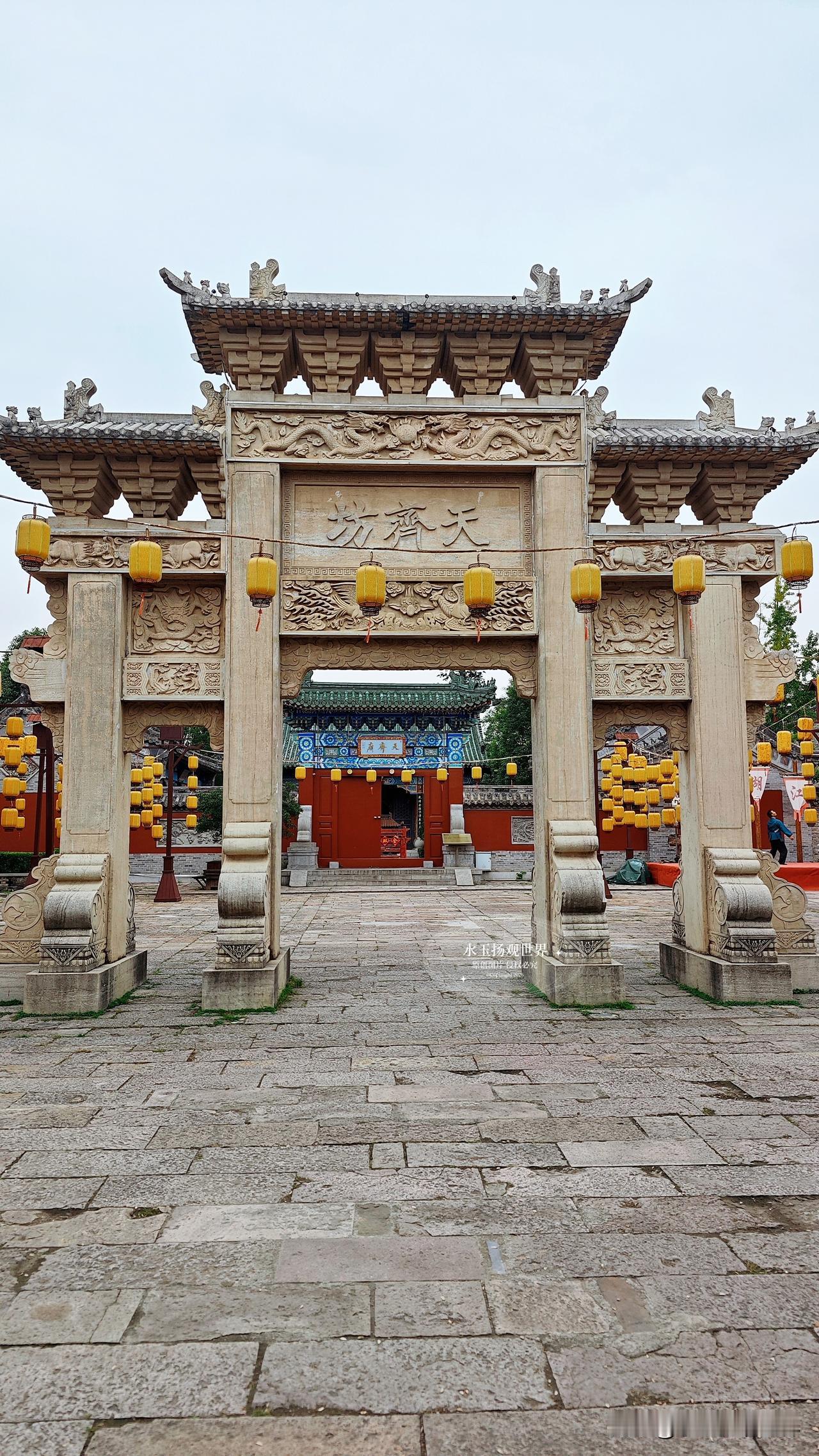 下午去了天后宫,这座闽南风格的建筑在北方古城里格外显眼,木雕、石雕都精致得不像话。刚好赶上“乾隆巡游”的实景演出,演员穿着龙袍,带着侍卫宫女走在街上,吆喝声、锣鼓声把古城的热闹又带了回来。站在步云廊桥上,能俯瞰整个古城,灰瓦连片,河道蜿蜒,远处的复兴楼在阳光下闪着光。风里飘来麦芽糖的甜香,还有戏台上传来的柳琴戏调子,那一刻,我好像看到了几百年前的繁华:商铺林立,游人如织,运河里商船往来,码头上货物堆积如山,乾隆皇帝站在桥上,提笔写下“天下第一庄”五个字。