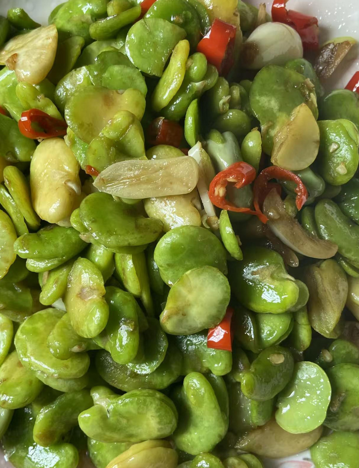 3️⃣红烧嫩蚕豆春天的嫩蚕豆自带鲜甜,加点蒜片和小米辣炒香,软绵入味,粉糯的口感老人小孩都爱吃,吃着清爽不厚重。