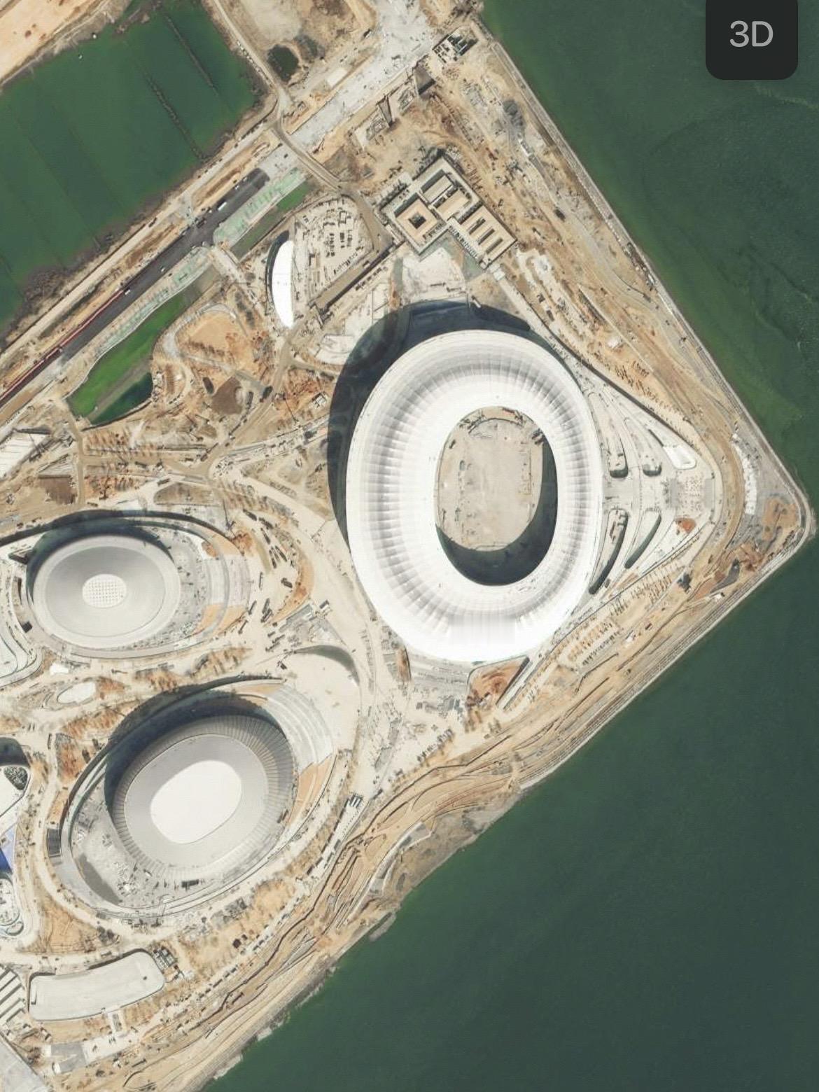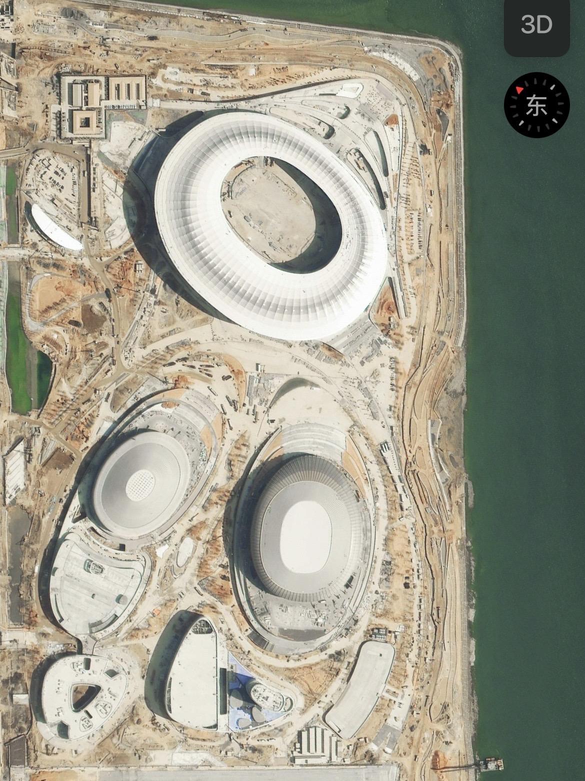 而在卫星地图上细看,它们整体形如一个个巨大的 “鸟窝”,灵动又极具辨识度,这就是坐落于广州南沙的大湾区文化体育中心。