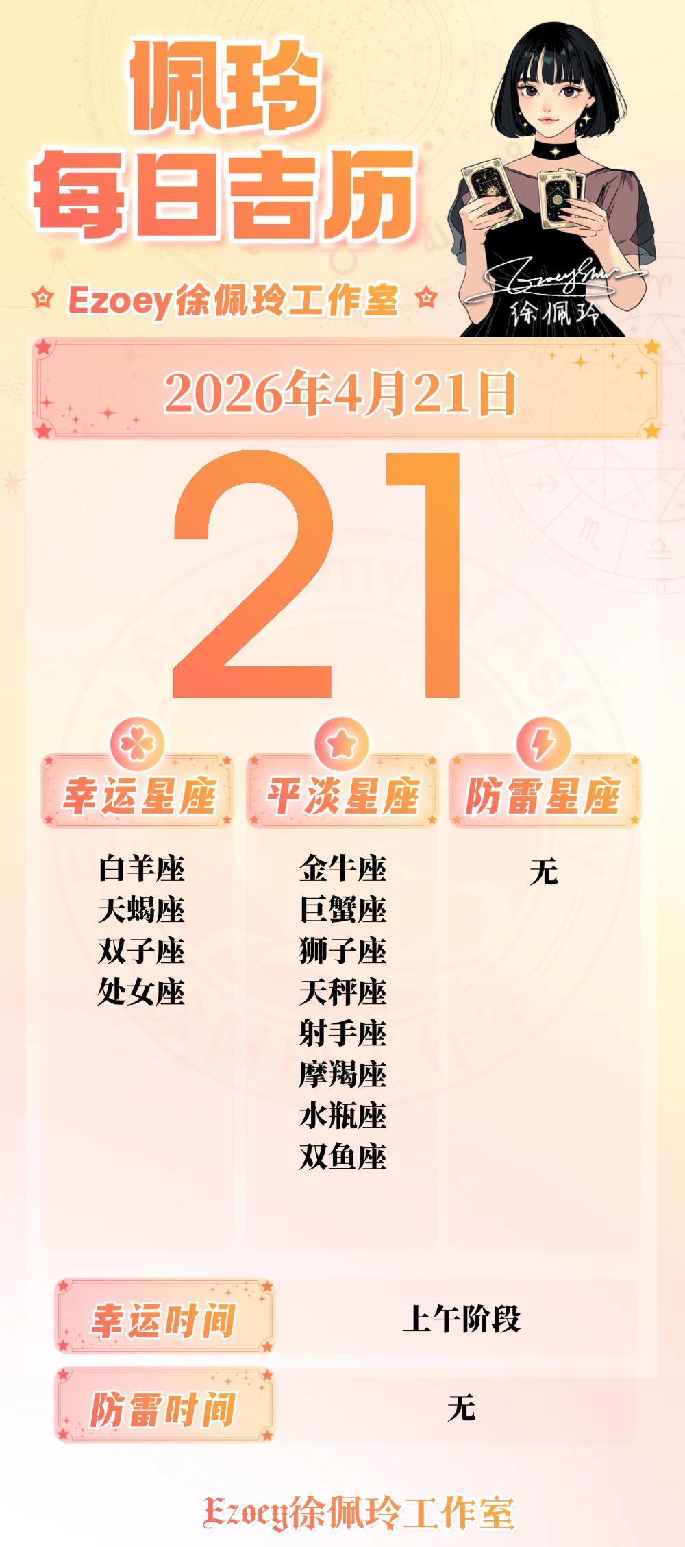 【4.21日播报】急中生智日 幸运星星:白羊座、天蝎座、双子座、处女座——Ezoey徐佩玲26年星座播报