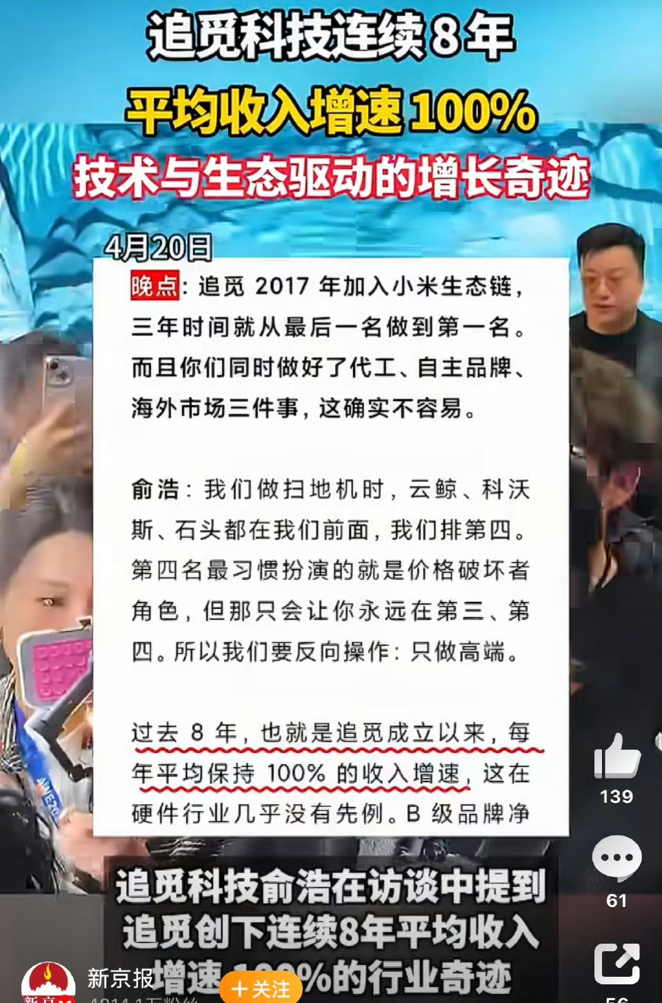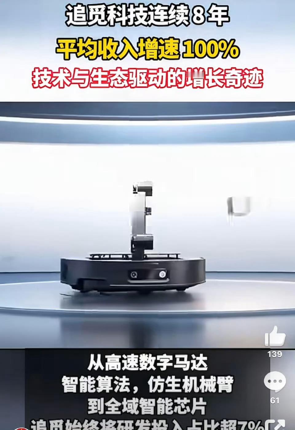 追觅连续8年平均收入增速100%从清华技术起步,追觅凭硬核研发实力,实现连续8年