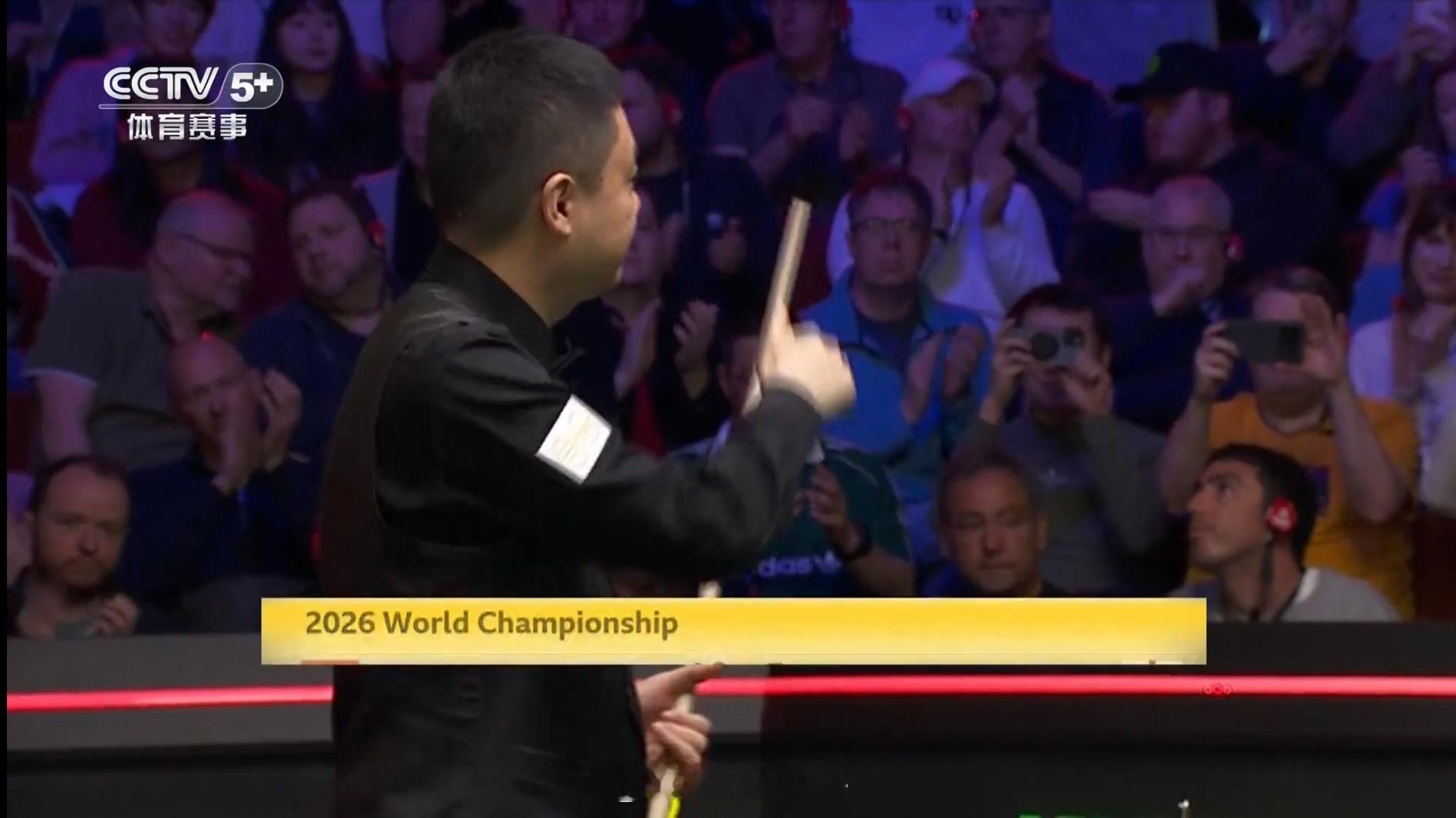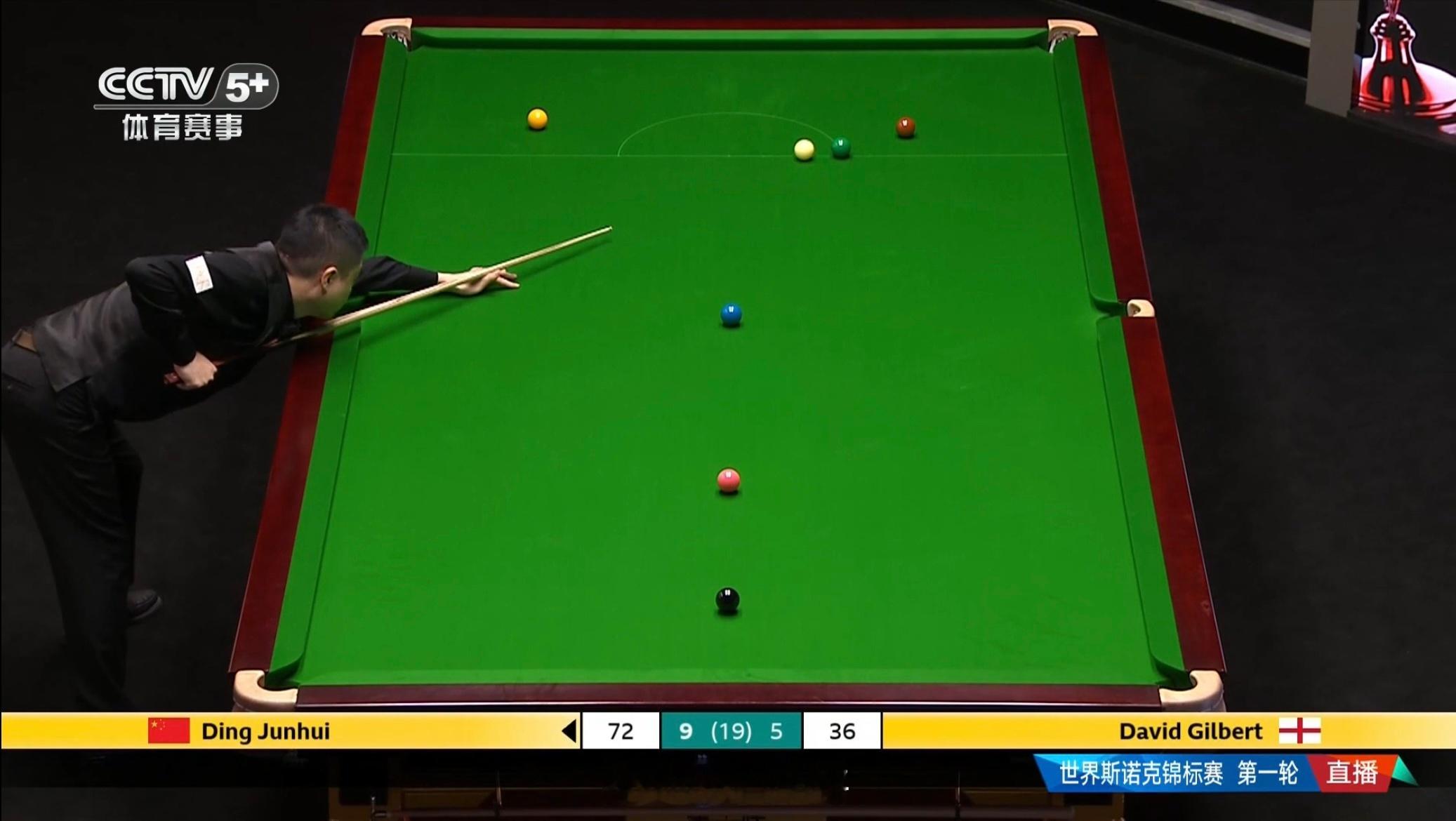大卫·吉尔伯特的表情非常落寞。仿佛生无可恋。此时,是丁俊晖的赛点局,9:5领