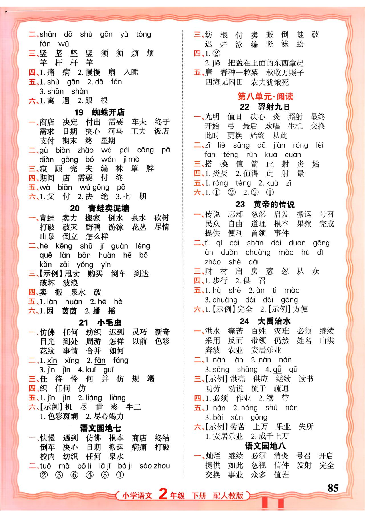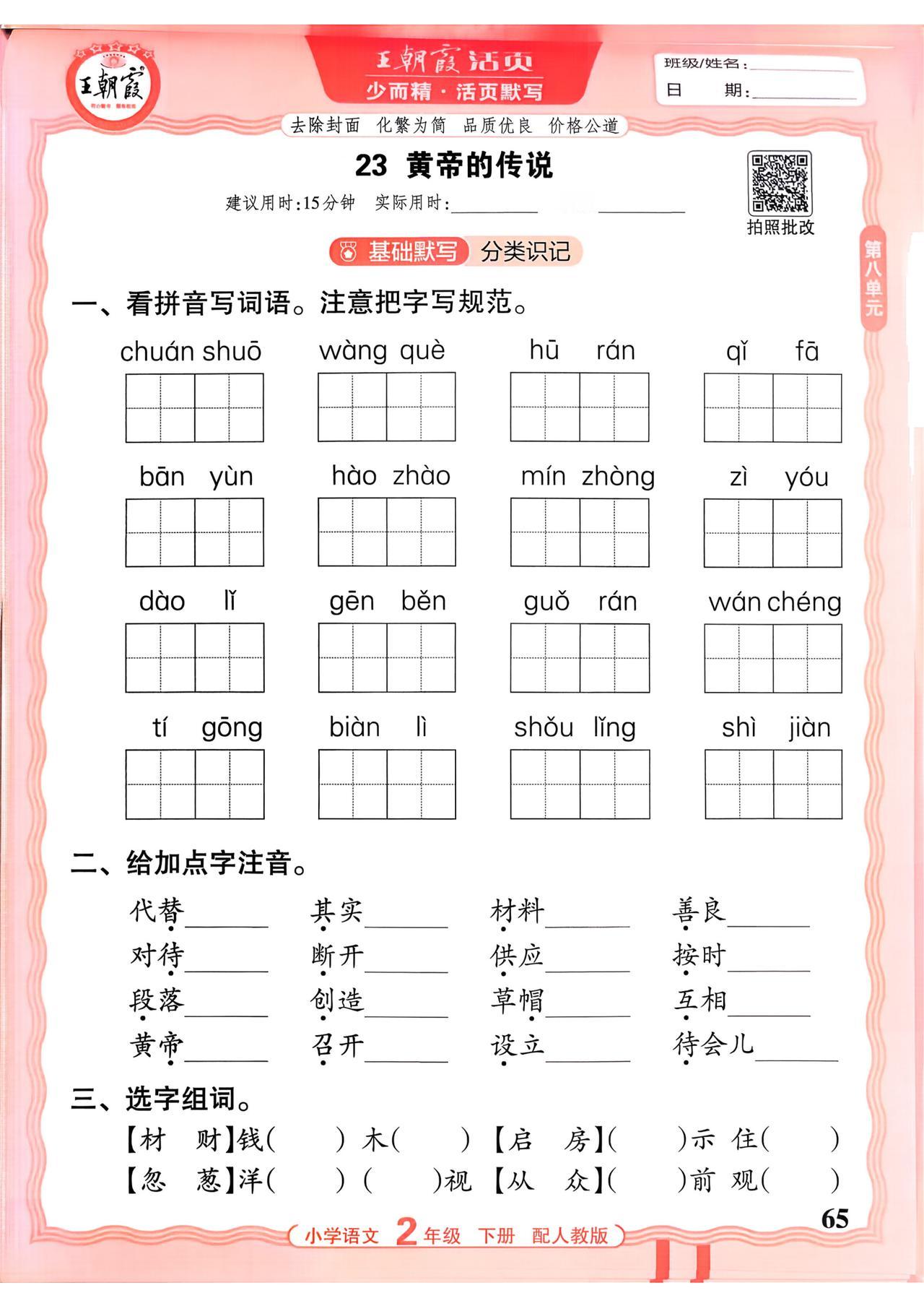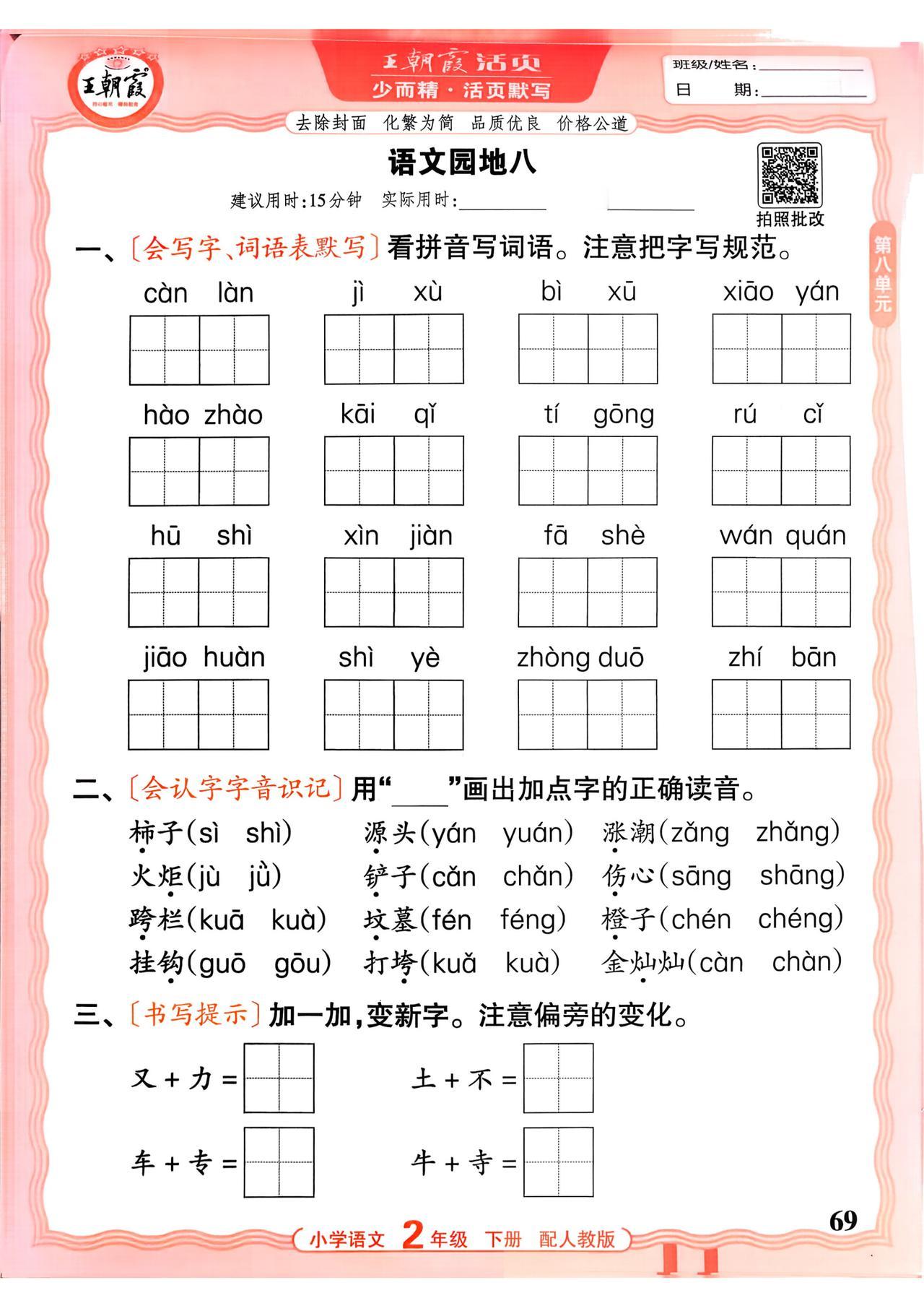 26春二年级下册语文,第八单元基础知识活页默写+参考答案,收藏备用