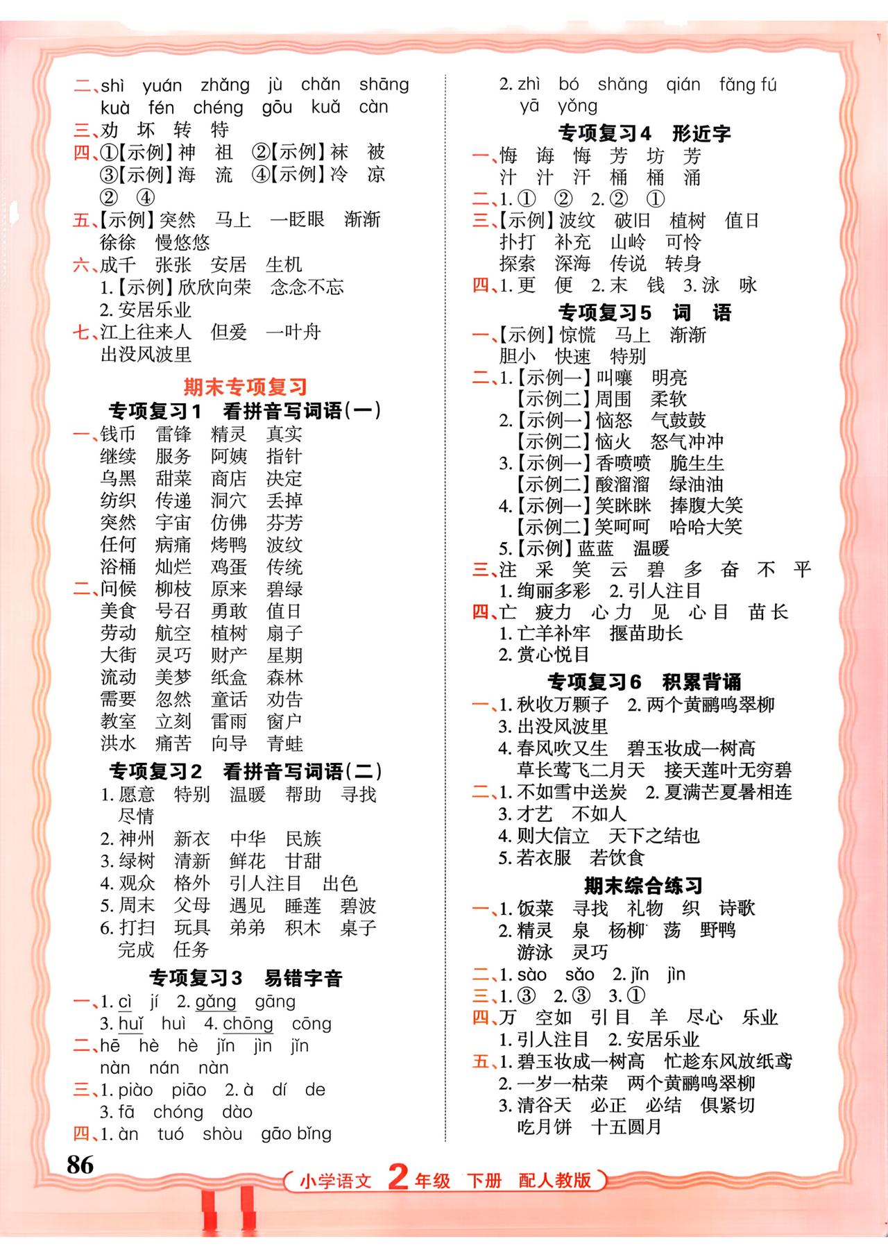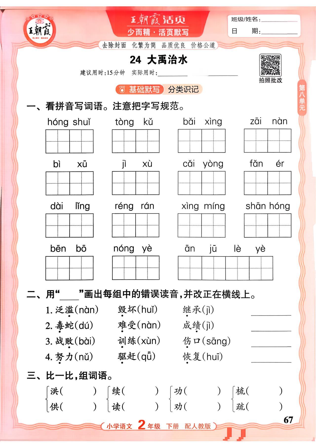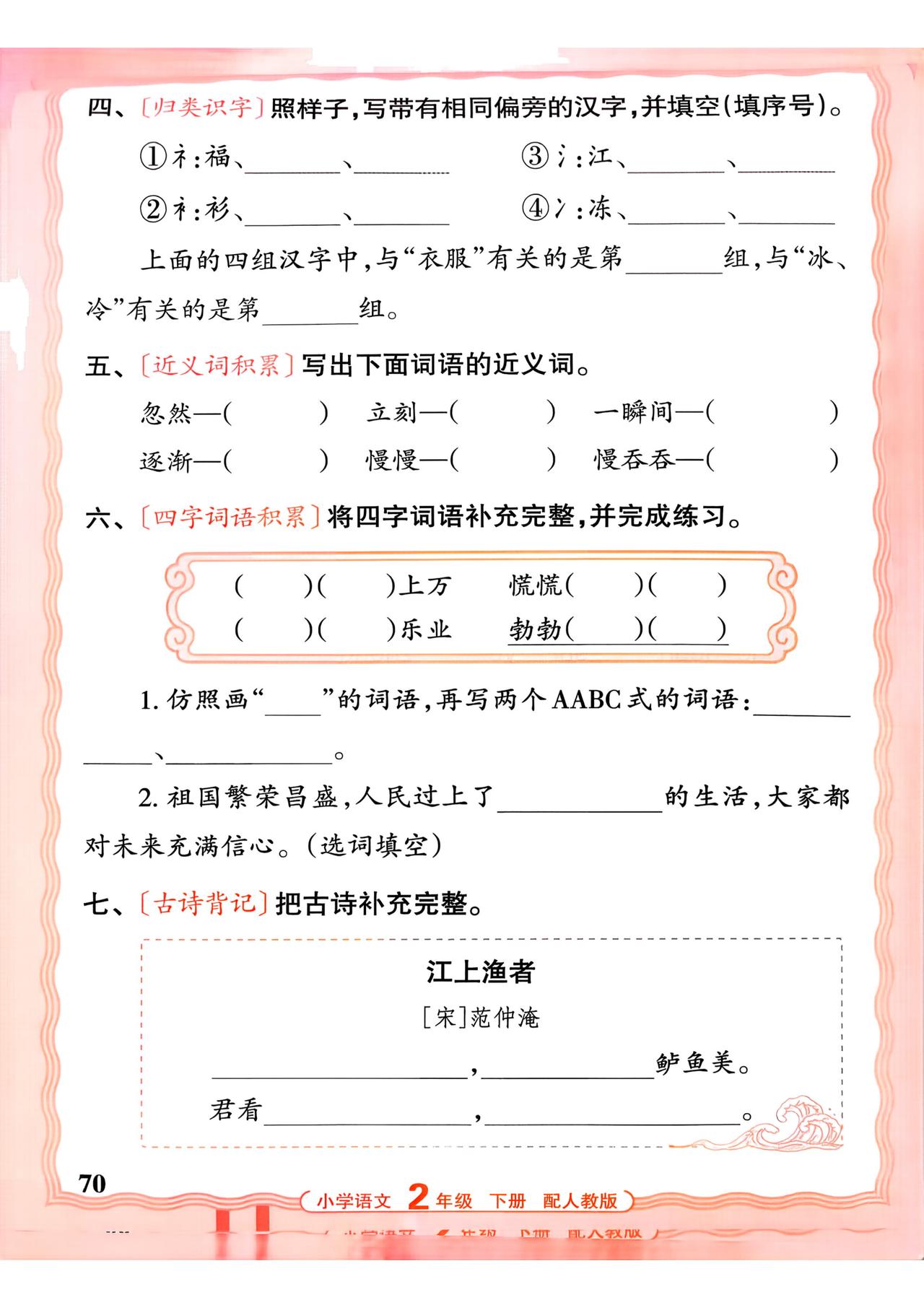 26春二年级下册语文,第八单元基础知识活页默写+参考答案,收藏备用