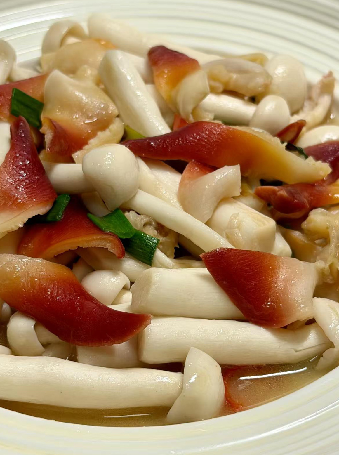 3️⃣ 海鲜菇炒北极贝鲜掉眉毛的快手菜!北极贝简单焯水,和海鲜菇一起大火快炒,鲜味儿直接拉满。口感脆嫩,吃着清爽不厚重,没胃口的时候来一盘超合适。