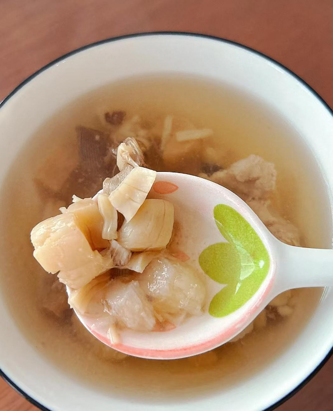 1️⃣ 沙虫瘦肉汤不用名贵食材,沙虫搭配瘦肉、干贝、山药一起慢炖,汤清味鲜,一点不油腻。平时喝一碗,暖乎乎的,肠胃也觉得很舒服,全家都能喝。