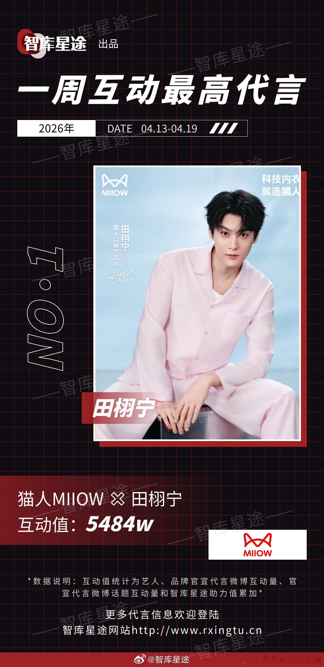 田栩宁猫人品牌代言人 本周新官宣的代言中,田栩宁官宣的猫人品牌代言人互动量第一,