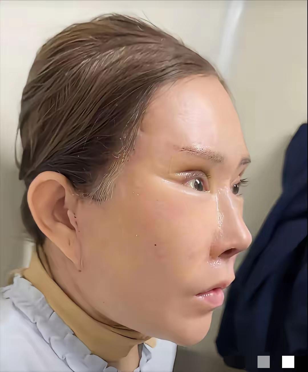 这是一张60岁老太太整容后的照片,确实看起来年轻了一点,但是一点都不自然,总是感