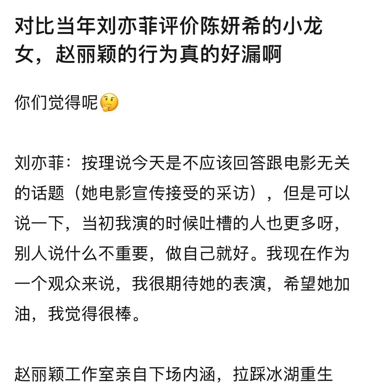 赵丽颖 刘亦菲两种处事方式 你更喜欢哪个