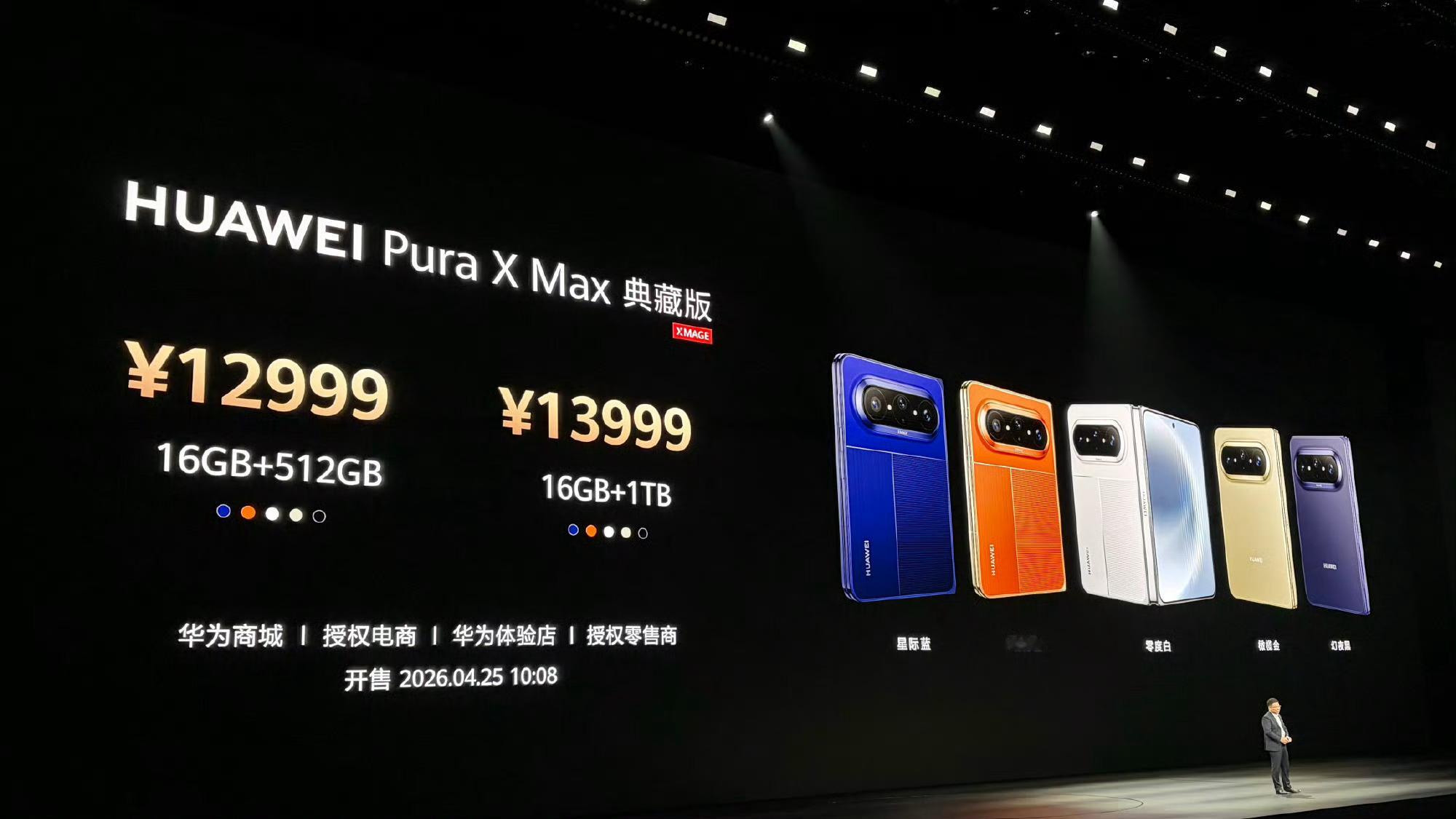 华为Pura X Max典藏版售价:16+512GB:12999元16+1TB:13999元