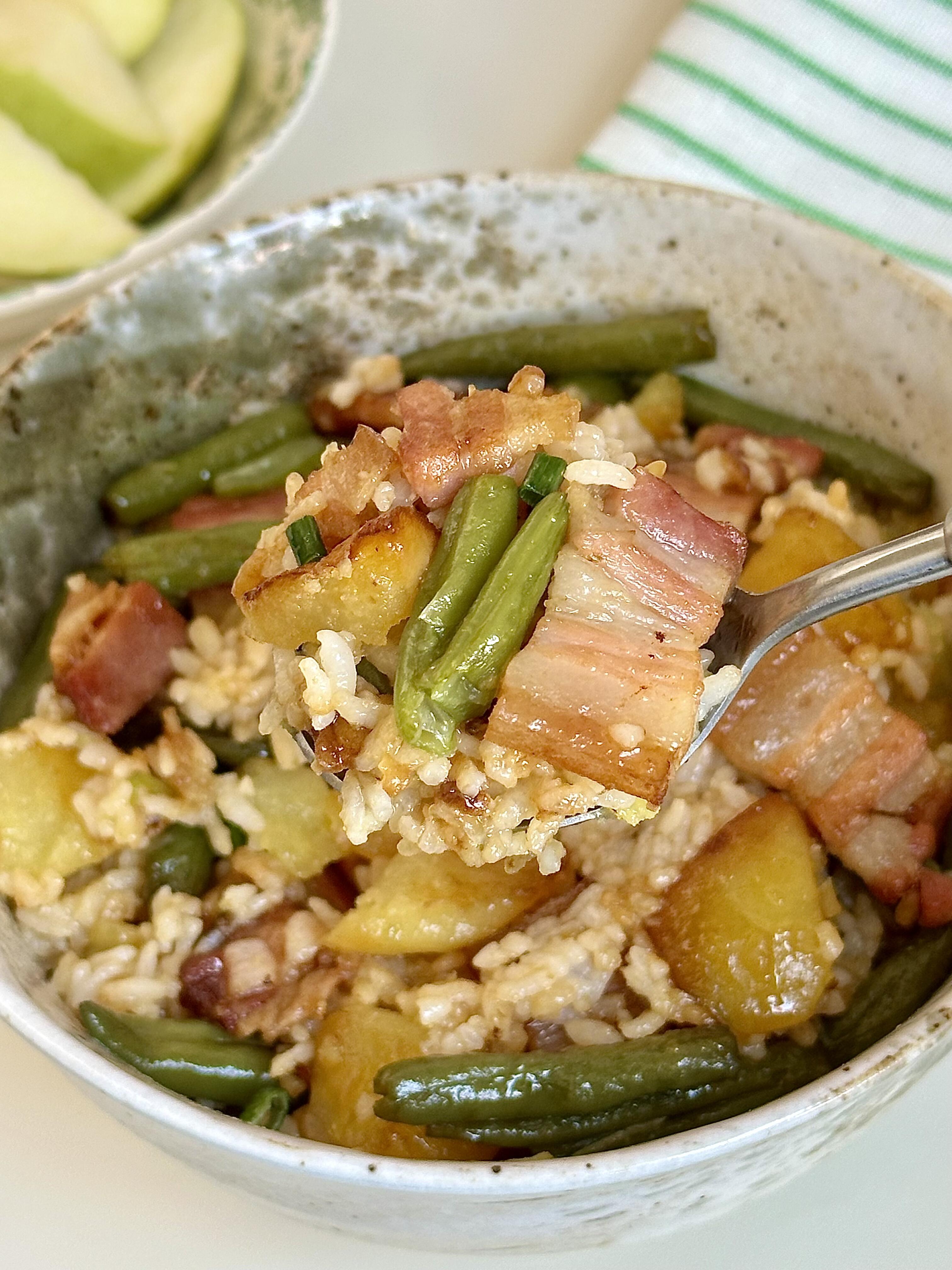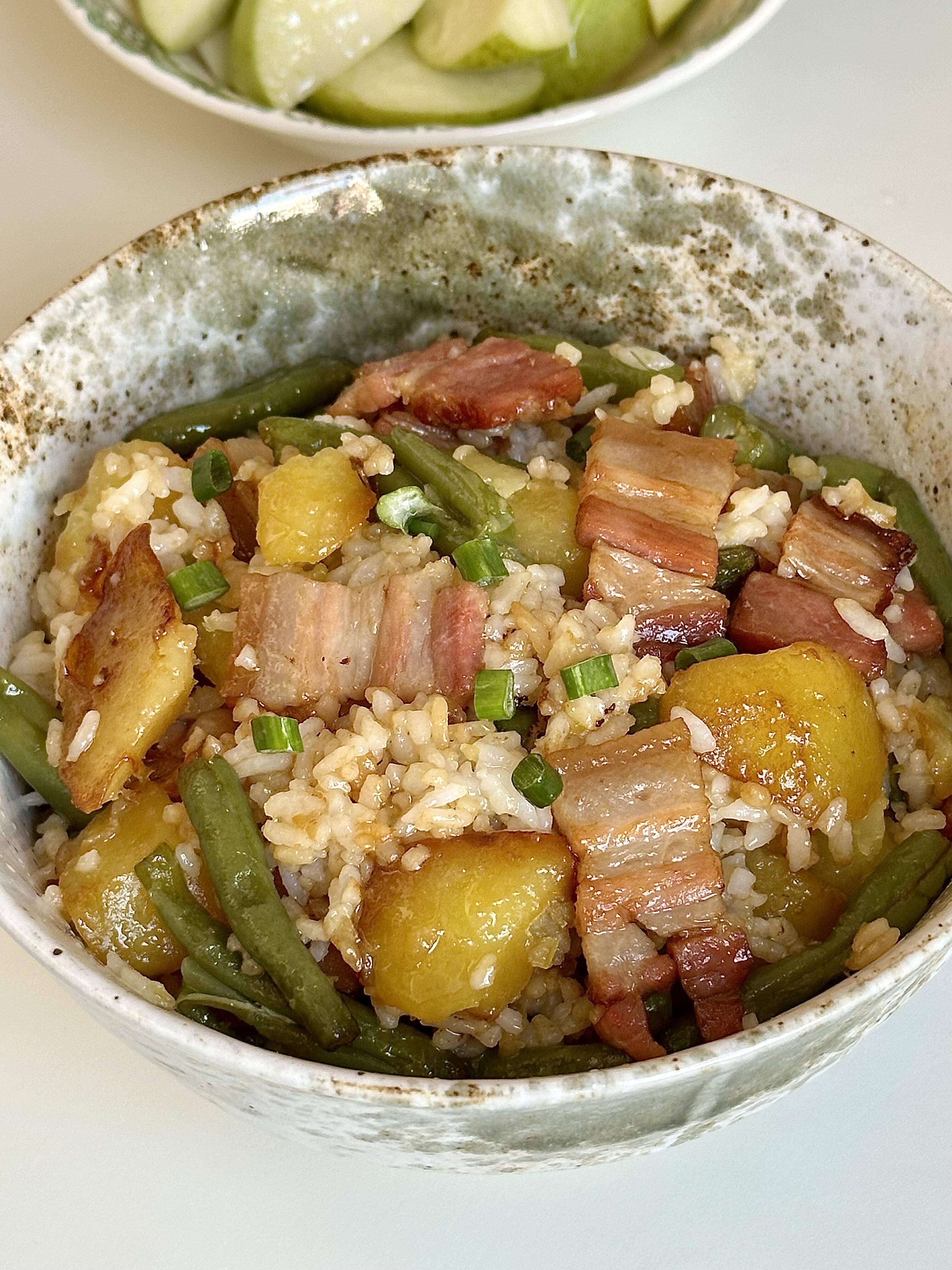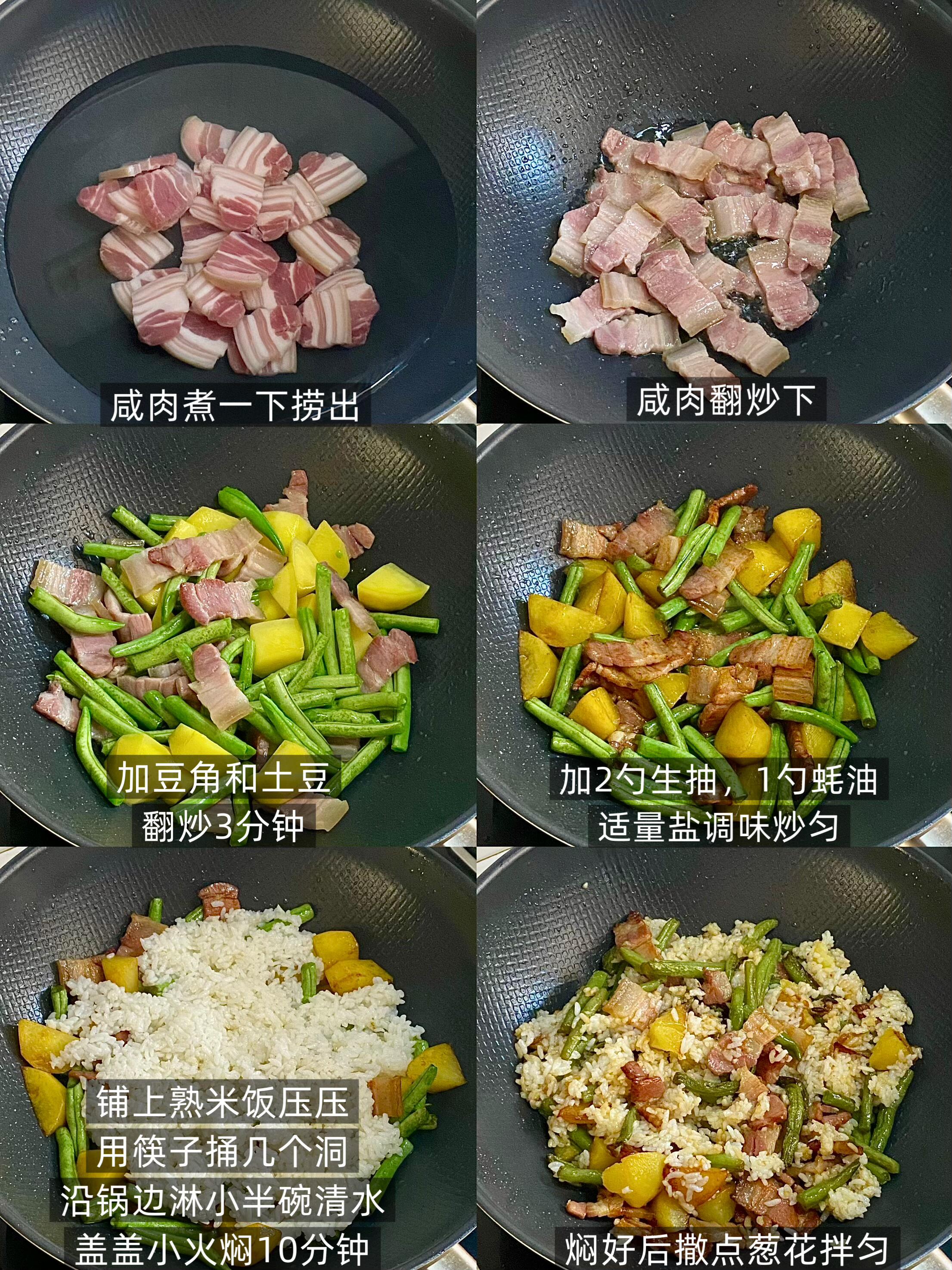 土豆豆角咸肉焖饭!巨香