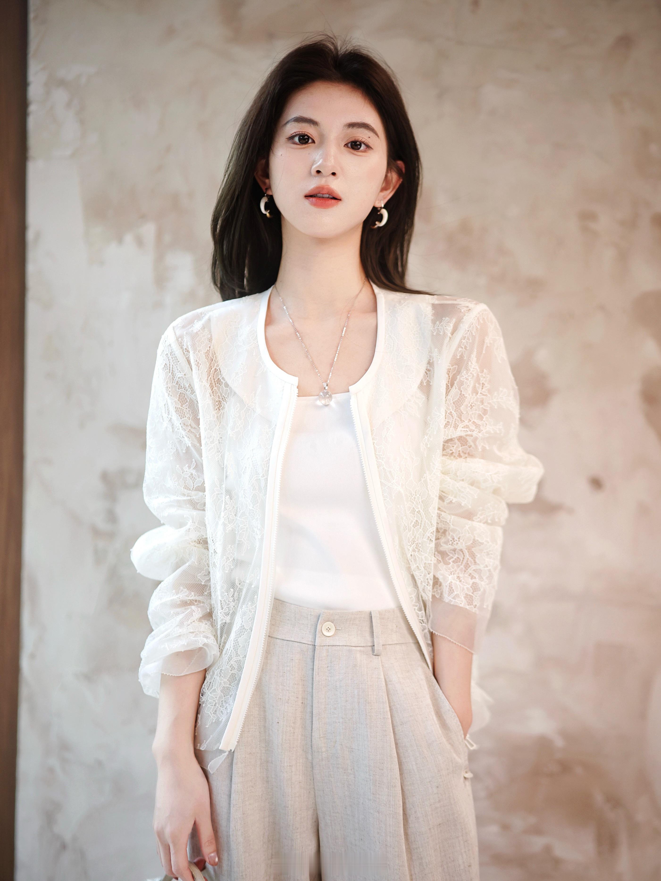 休闲与精致并存啊!!100真丝蕾丝外套 特重工上身又清清凉凉 喜欢的今晚快去播播