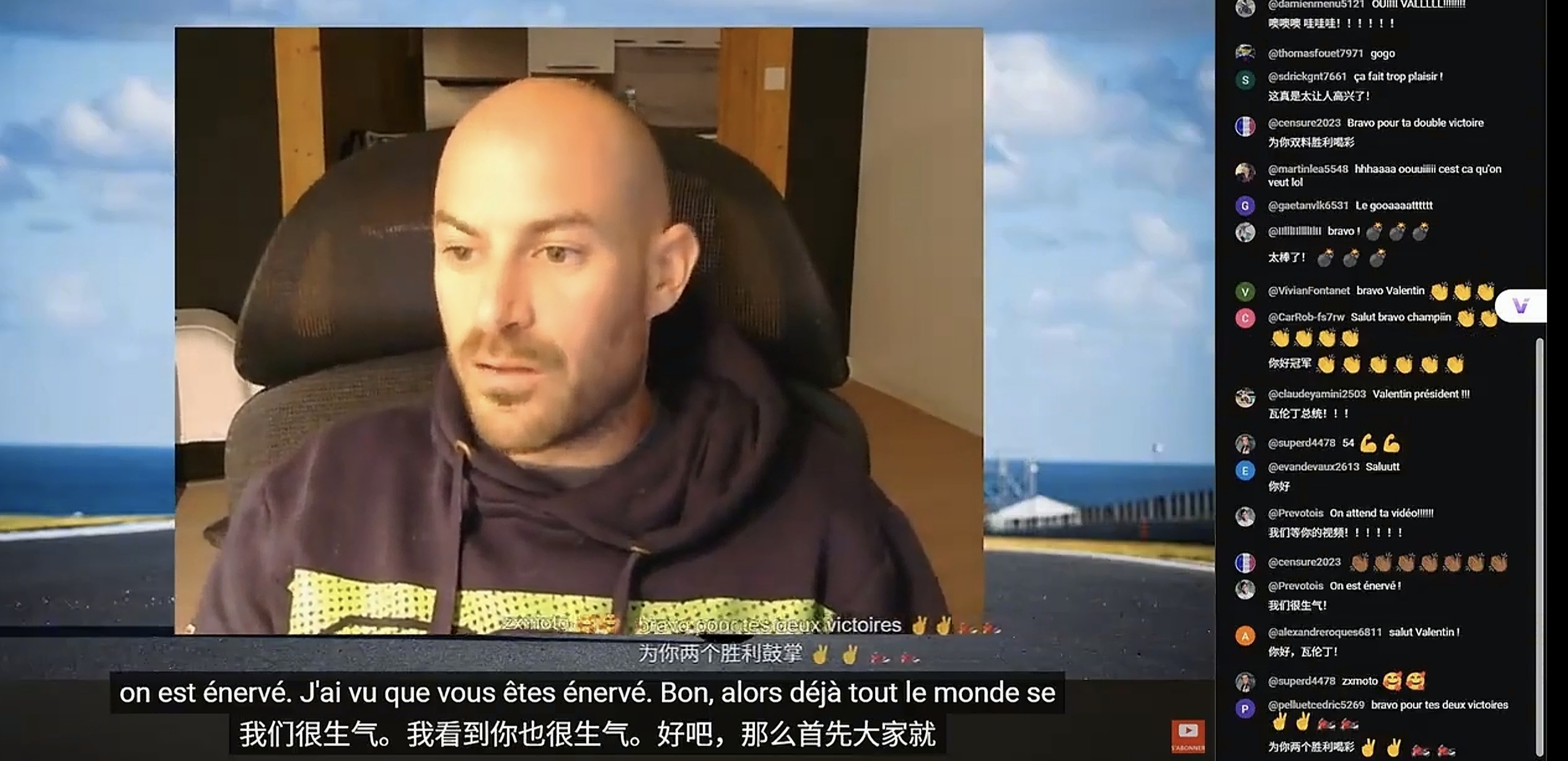 还有,比赛结束后,瓦伦丁开了直播,可以看得出,右侧的聊天弹幕滚动的几乎是中文问好的,瓦伦丁也表示“我们很生气,我也看到你们很生气”,然后让大家:“冷静,那里进展的太快了,我什么也没做”。