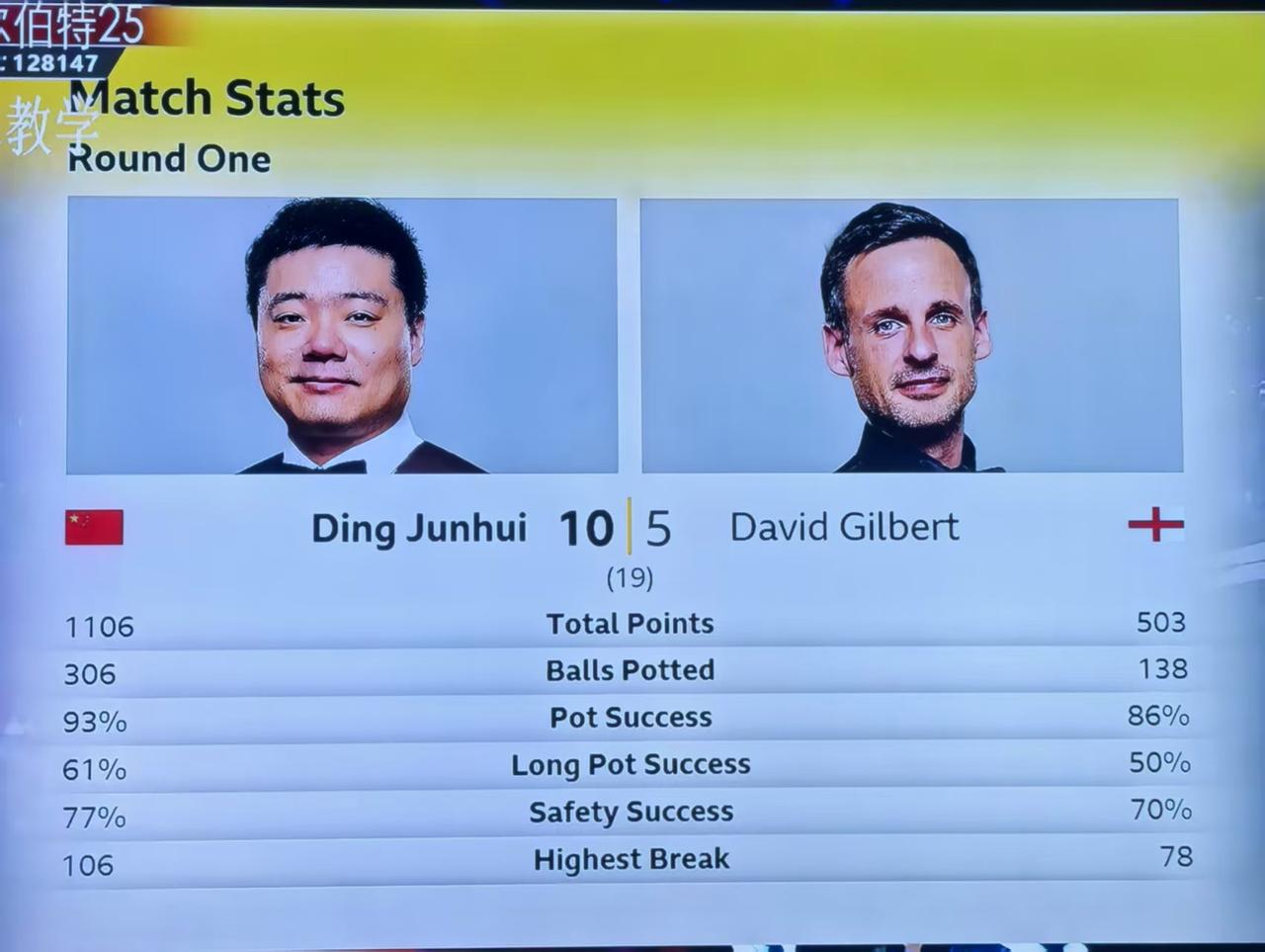 丁俊晖10-5击败吉尔伯特,进入世锦赛16强,下一轮对阵卫冕冠军赵心童,比赛时间是周五晚上9点30分,感觉要万人空巷了。