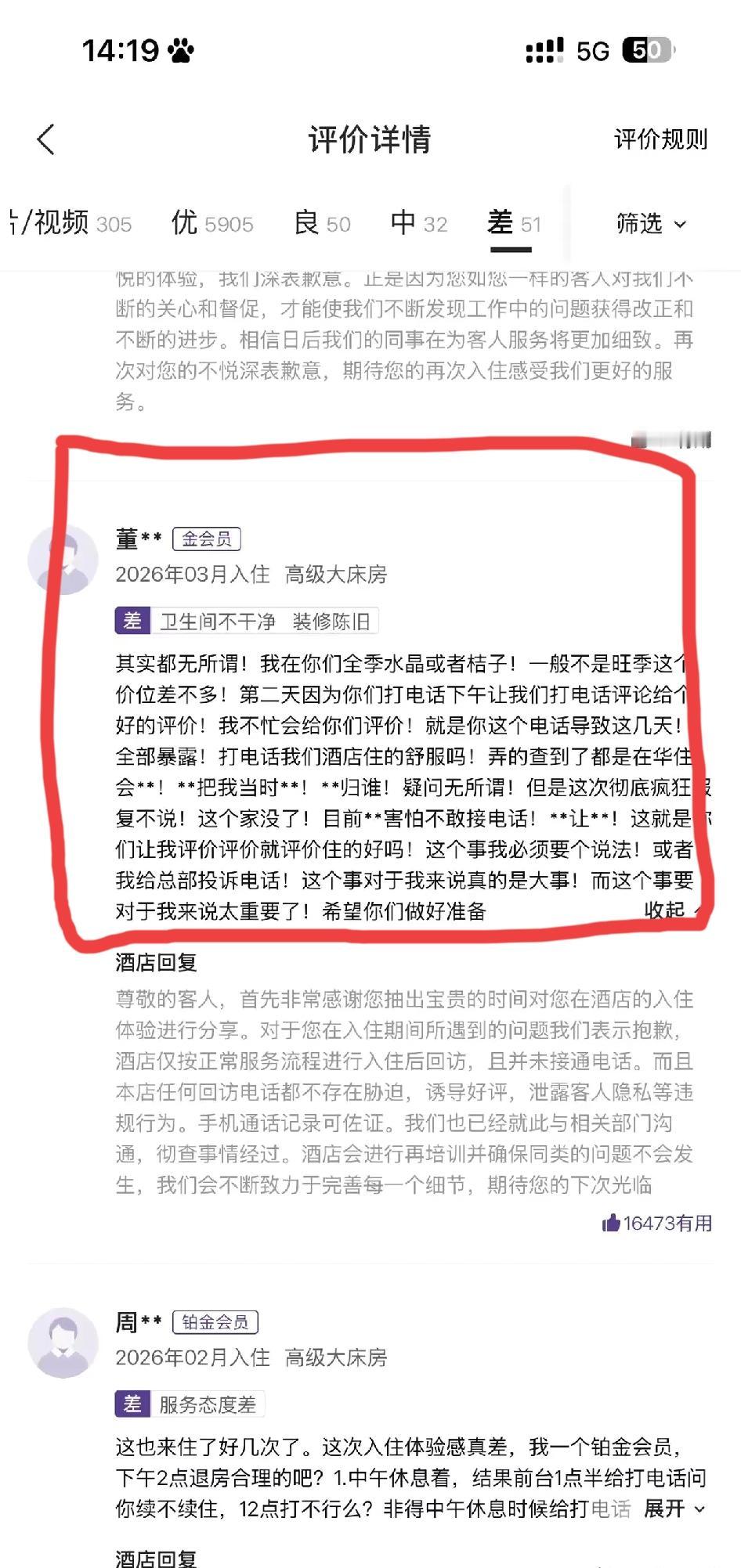 “如果不是你们酒店打电话催好评,我根本不会离婚!”