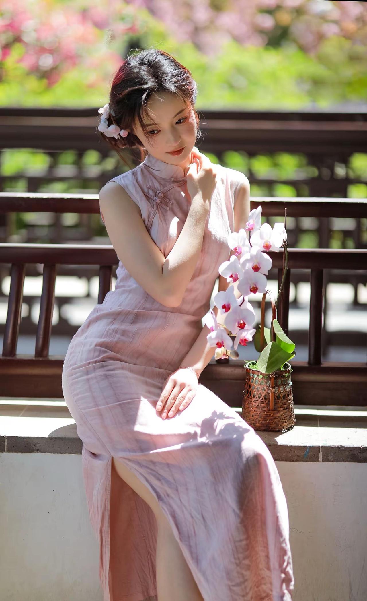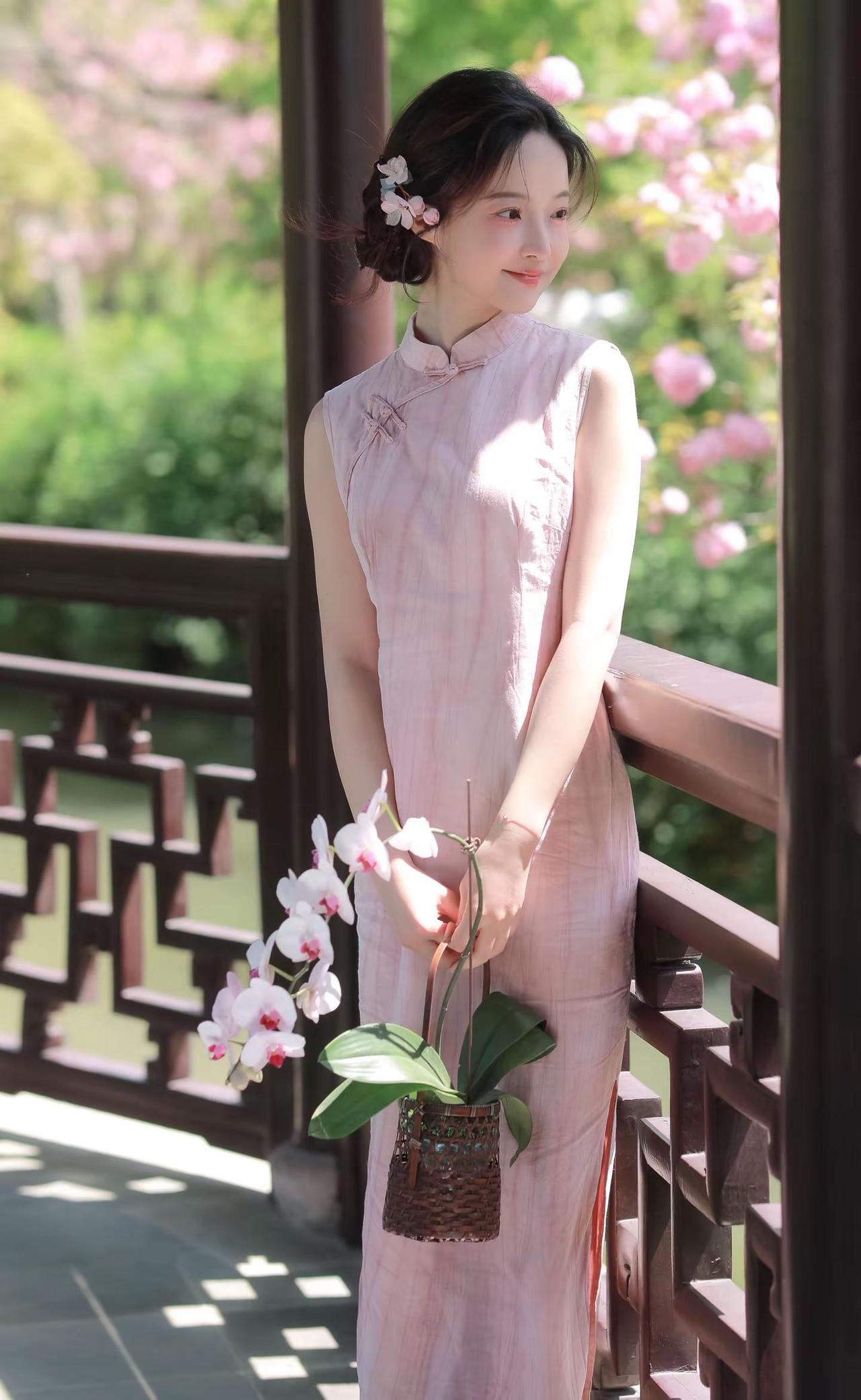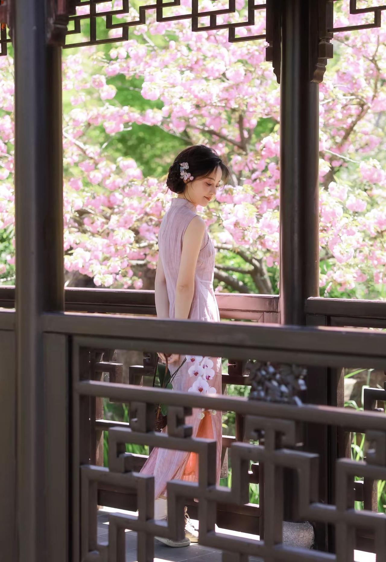 37岁正是穿旗袍的好时候啊~江南旗袍穿搭 浅粉色旗袍穿搭 旗袍 国风