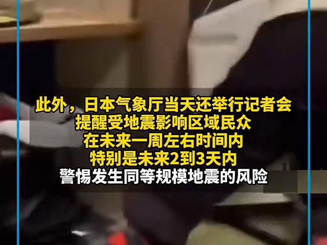 除了对地震等级、震源深度再次修正外,日本气象厅也发出提醒,称未来一周需要警惕同等规模地震风险,并呼吁民众持续避难至海啸警报解除,特别是在未来的2至3天内,发生8级以上更大地震的概率比平时增加了10倍。