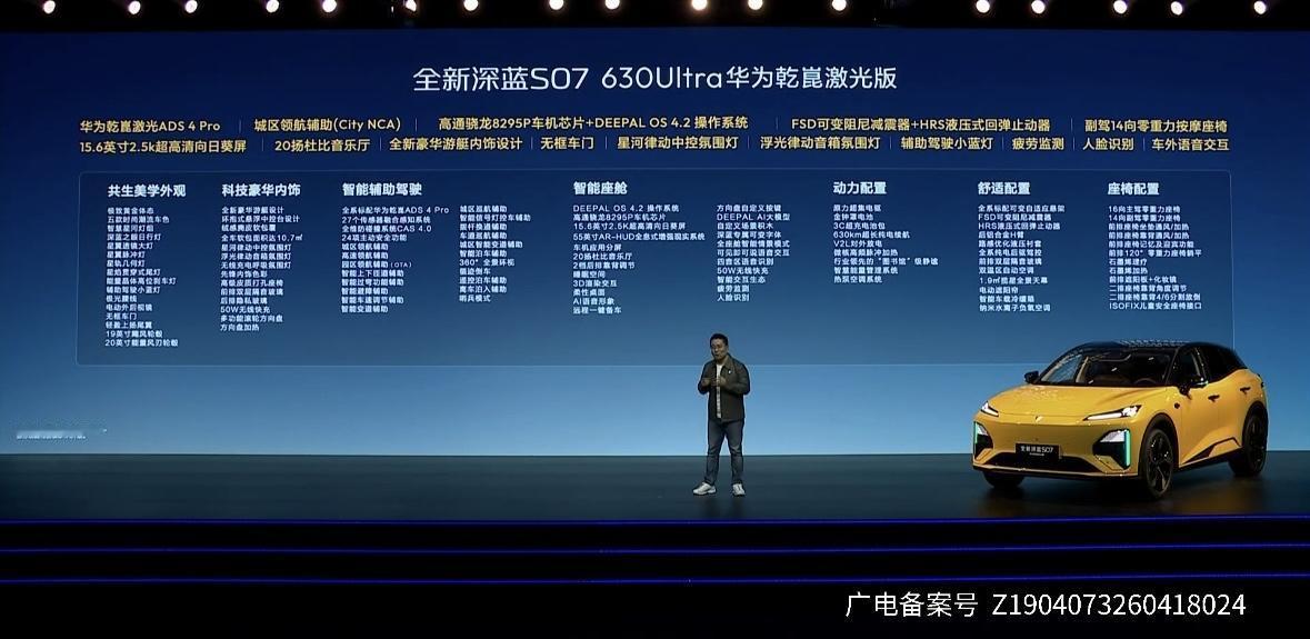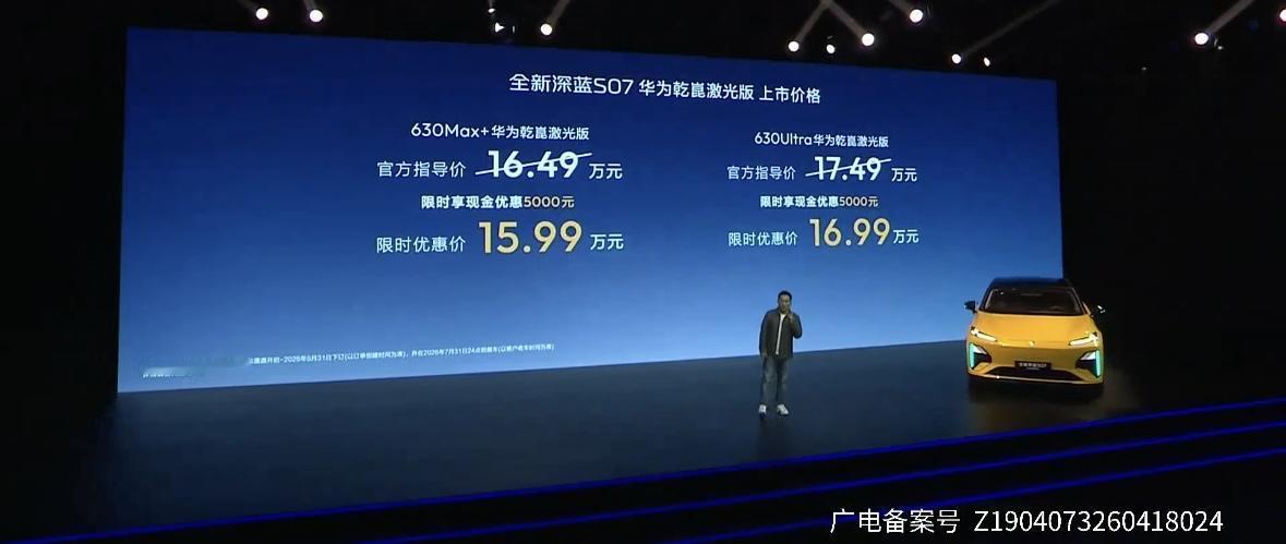 深蓝S07 630 Max+华为乾崑激光版:15.99万 深蓝S07 630