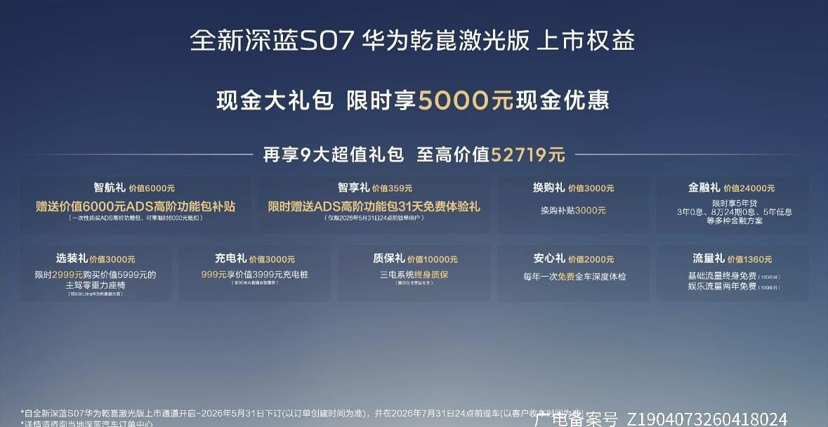 深蓝S07 630 Ultra华为乾崑激光版:16.99万