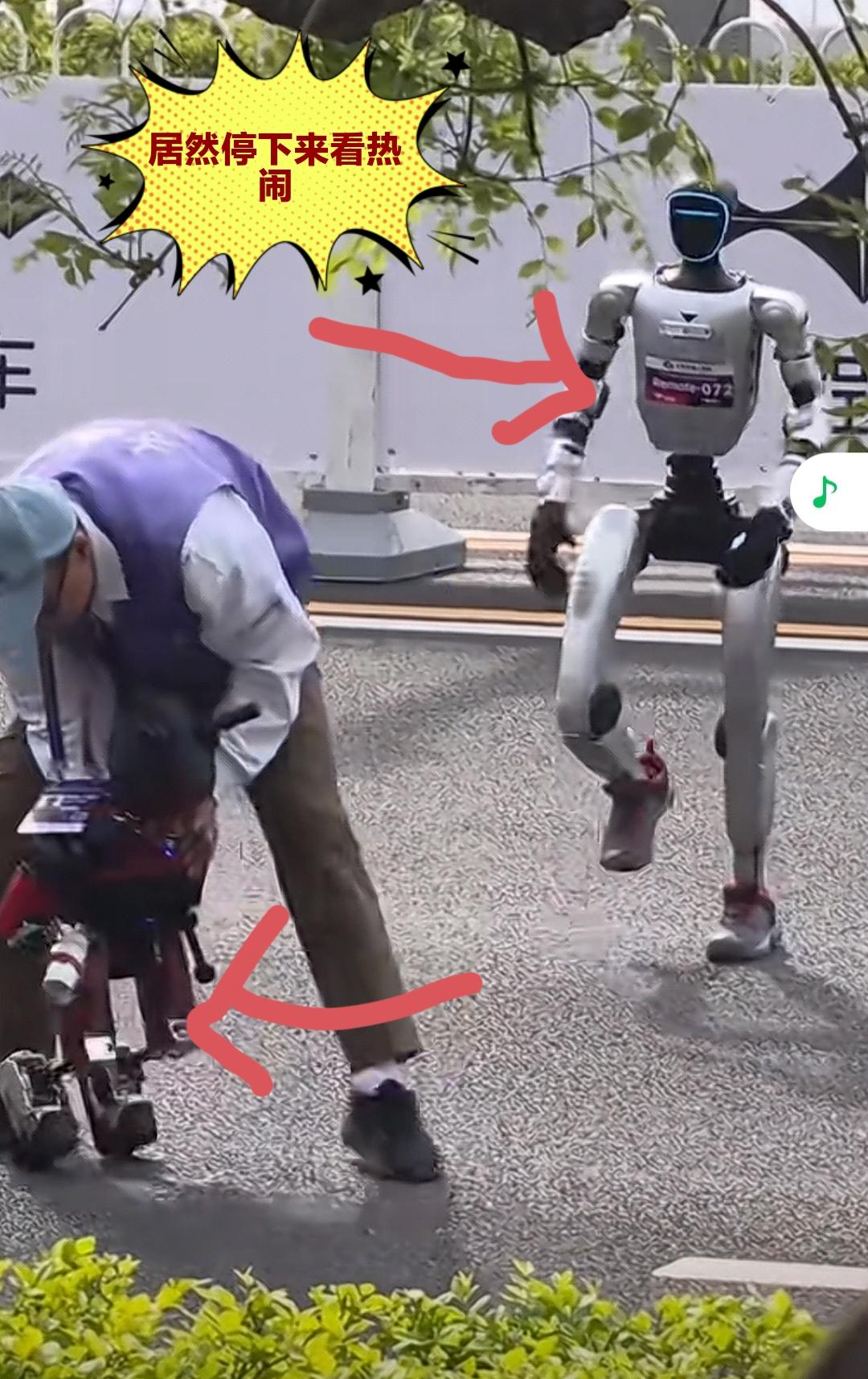 参加半马比赛的小朋友机器人累倒了,一个机器人停下来看热闹,还拍手[捂脸]