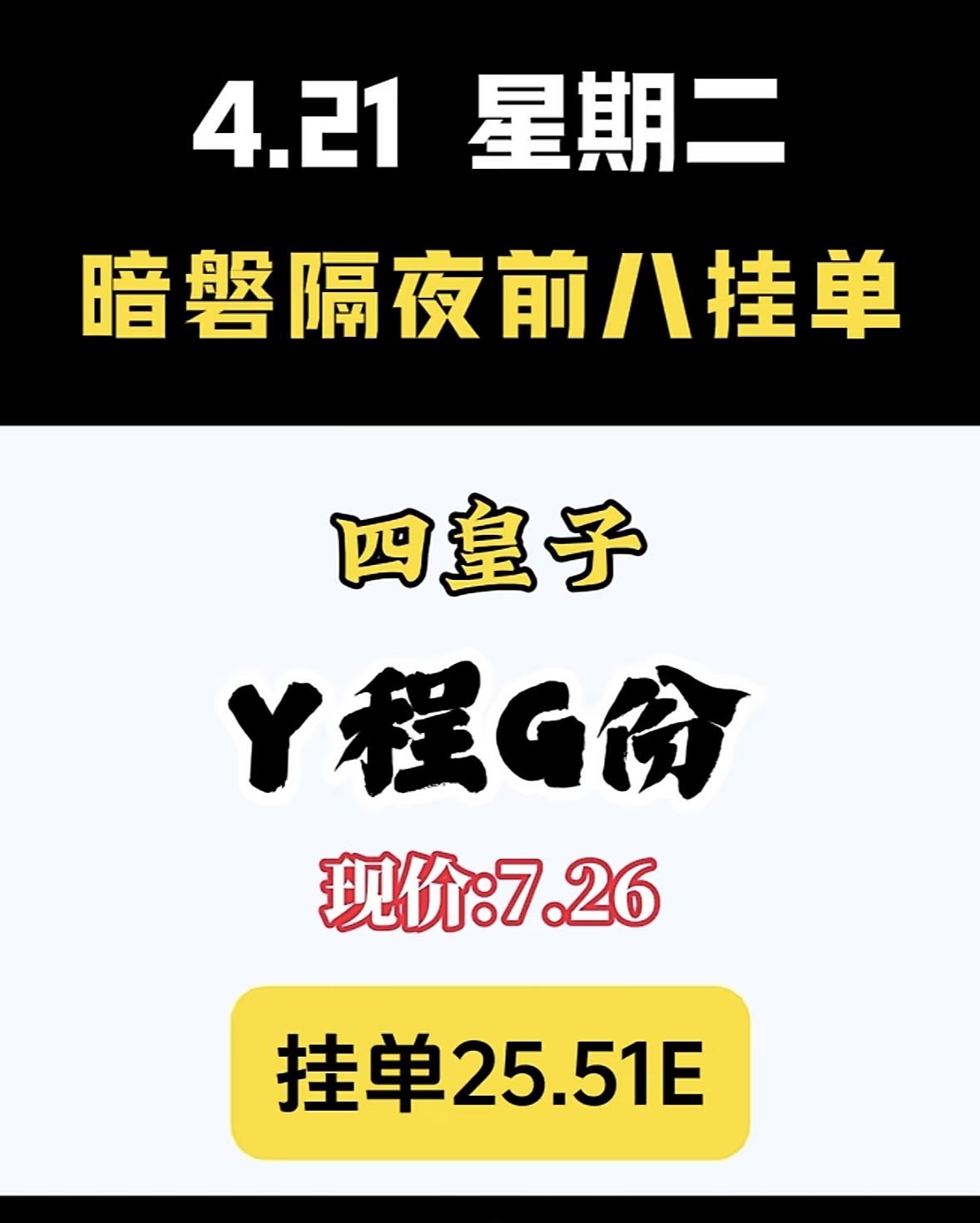 4.21暗盘隔夜前八挂单里,“八皇子”通鼎互联备受瞩目。这票现价16.64,挂单金额达10.38亿。通鼎互联曾叫通鼎光电,2015年1月20日更名。从英为财情数据看,它深圳市场价格11.63,跌了0.57,跌幅4.67%,当日幅度在11.26 - 12.06,成交量110,640,819。还有股权质押情况,2026年3月12日通鼎集团有解质和质押操作。这么大的挂单金额,后续走势值得好好关注,说不定有大行情呢。