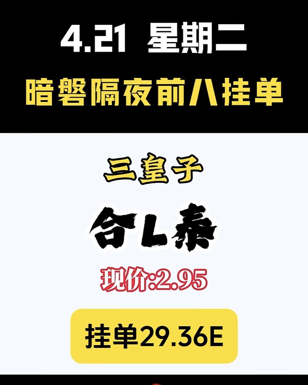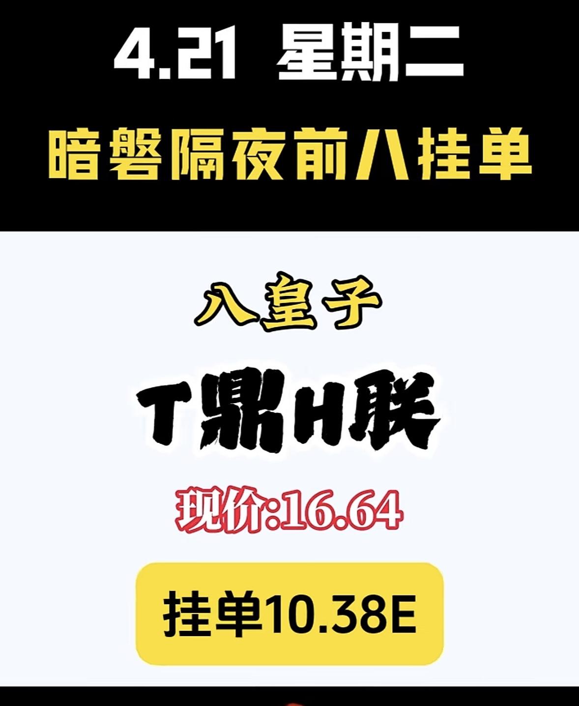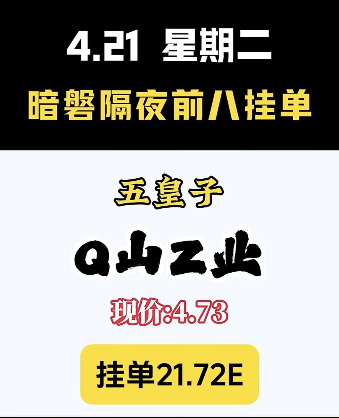 4月21日周二暗盘隔夜挂单排行榜出炉