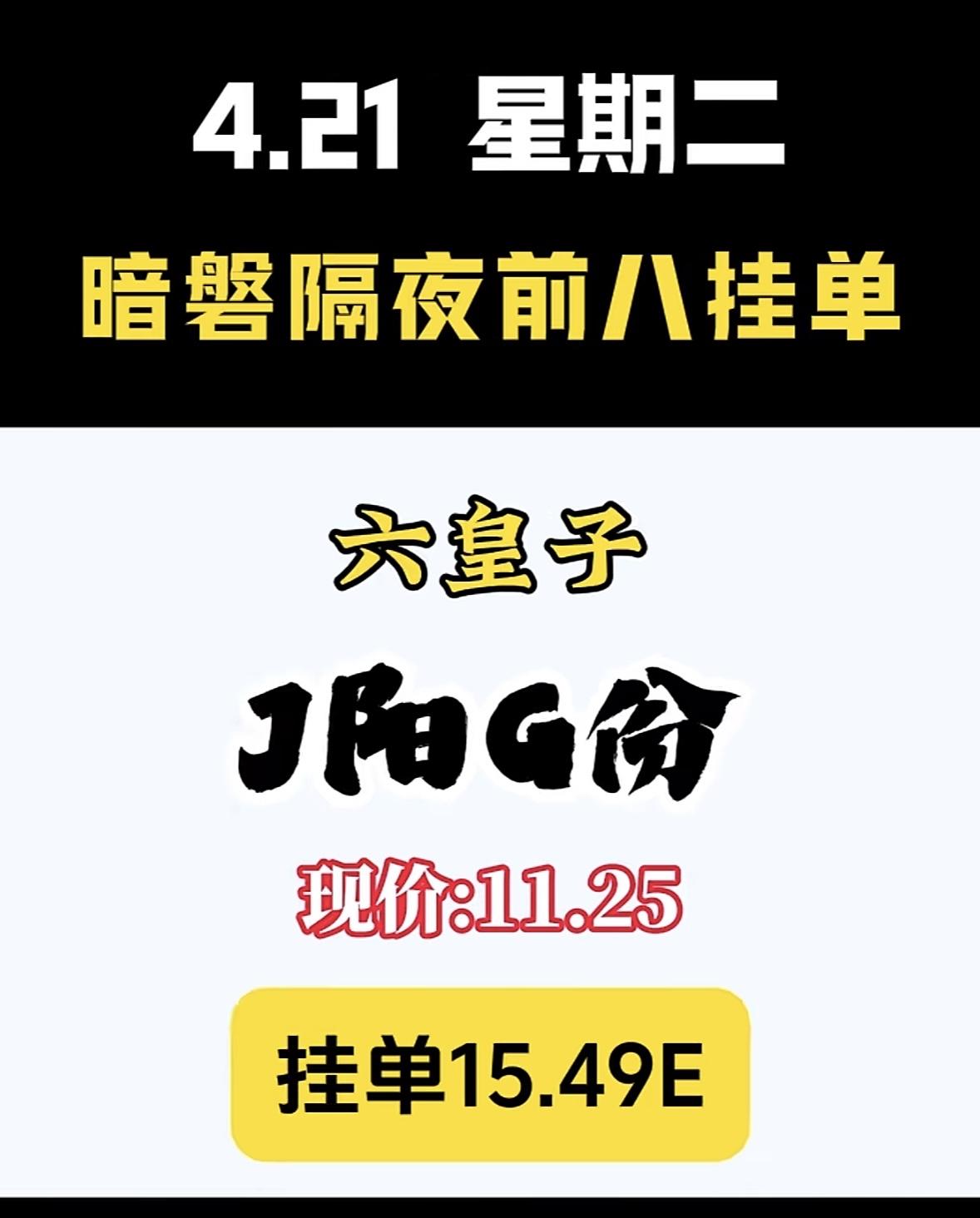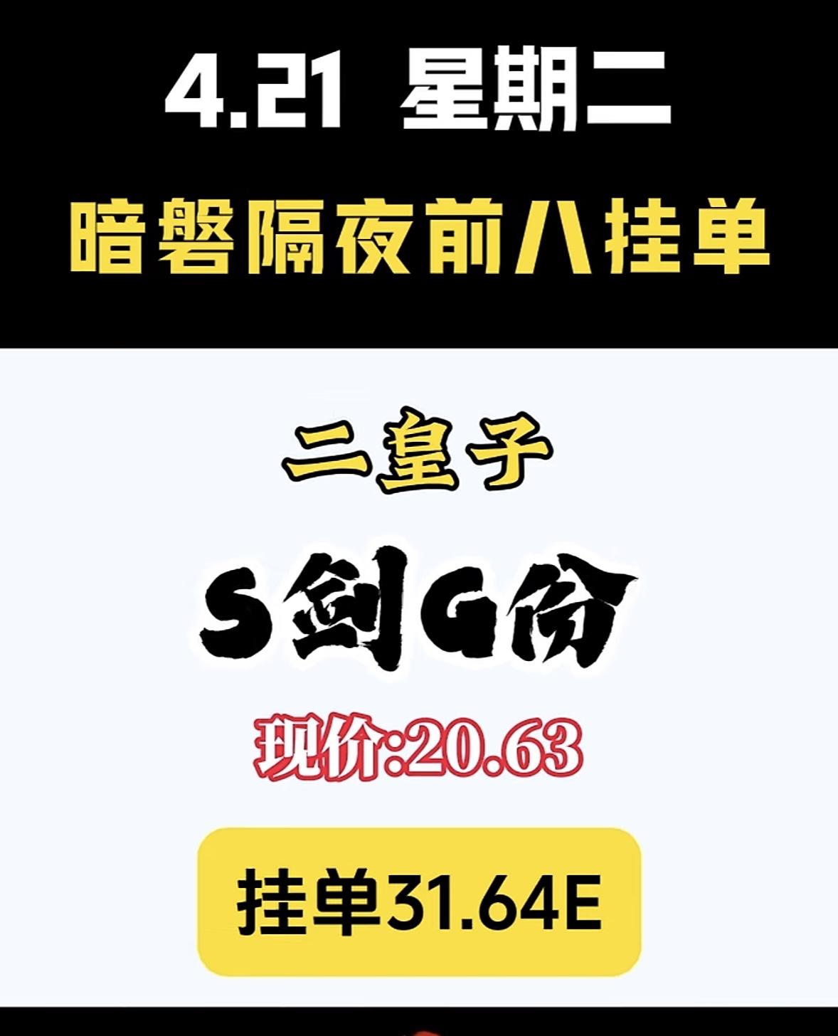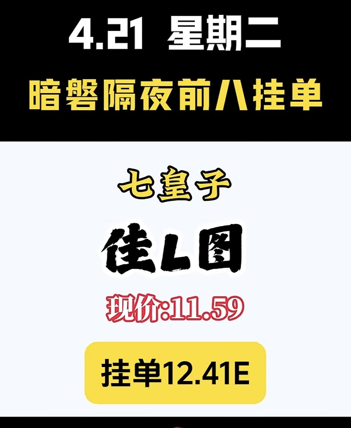 4月21日周二暗盘隔夜挂单排行榜出炉