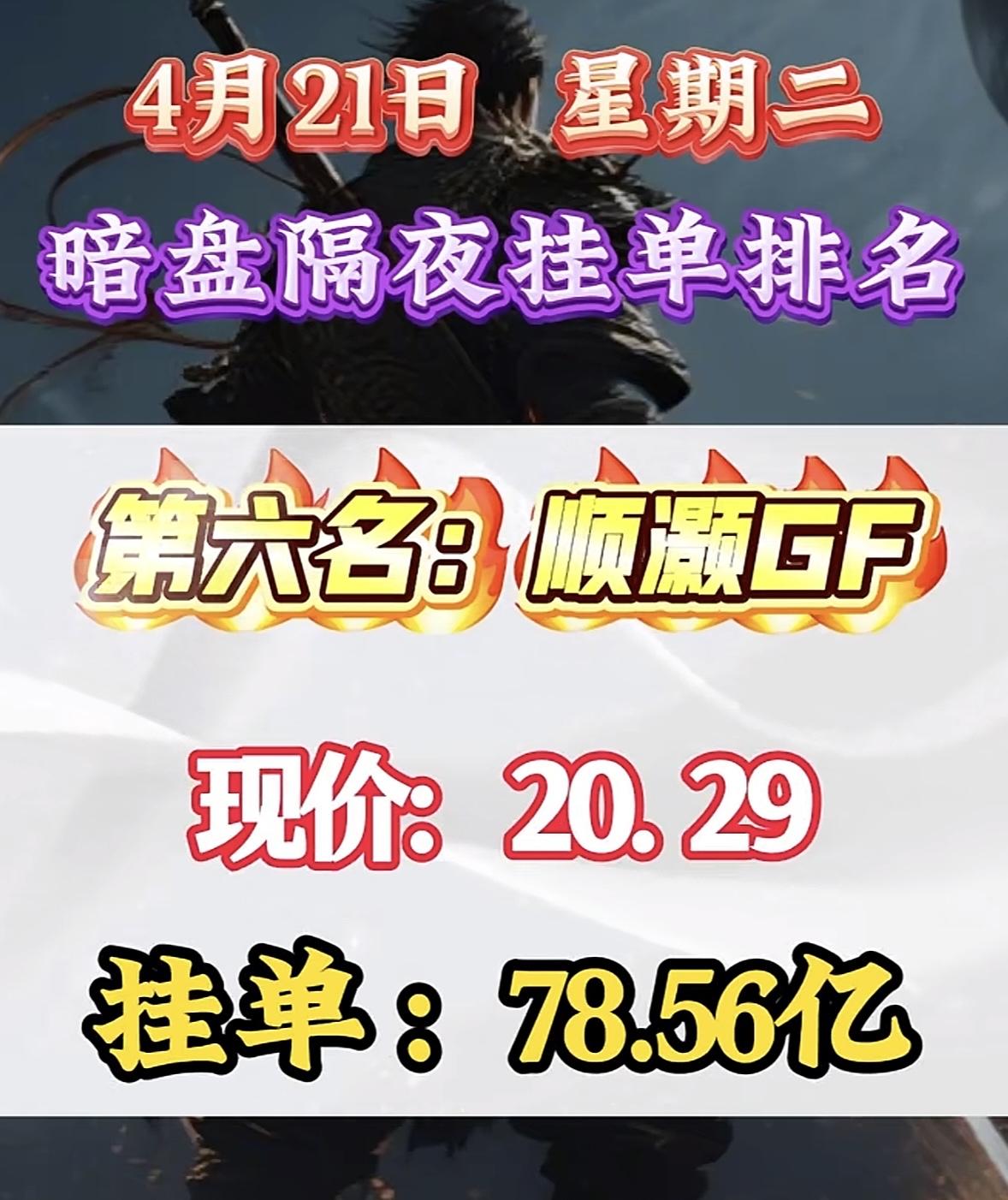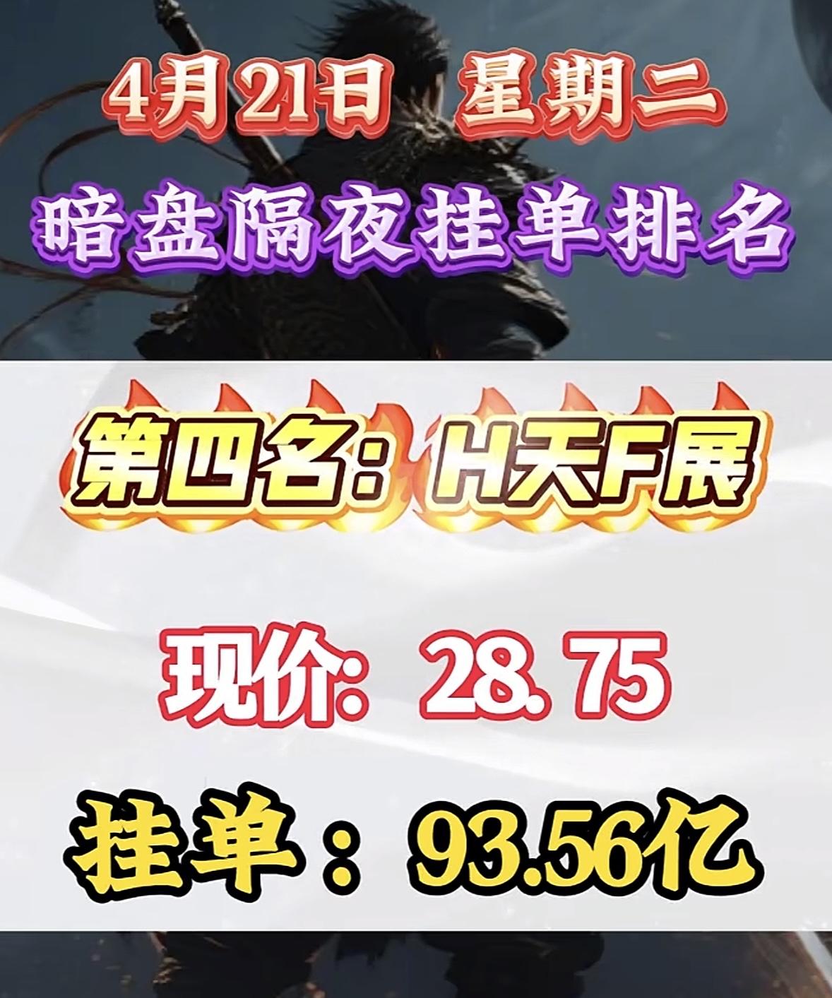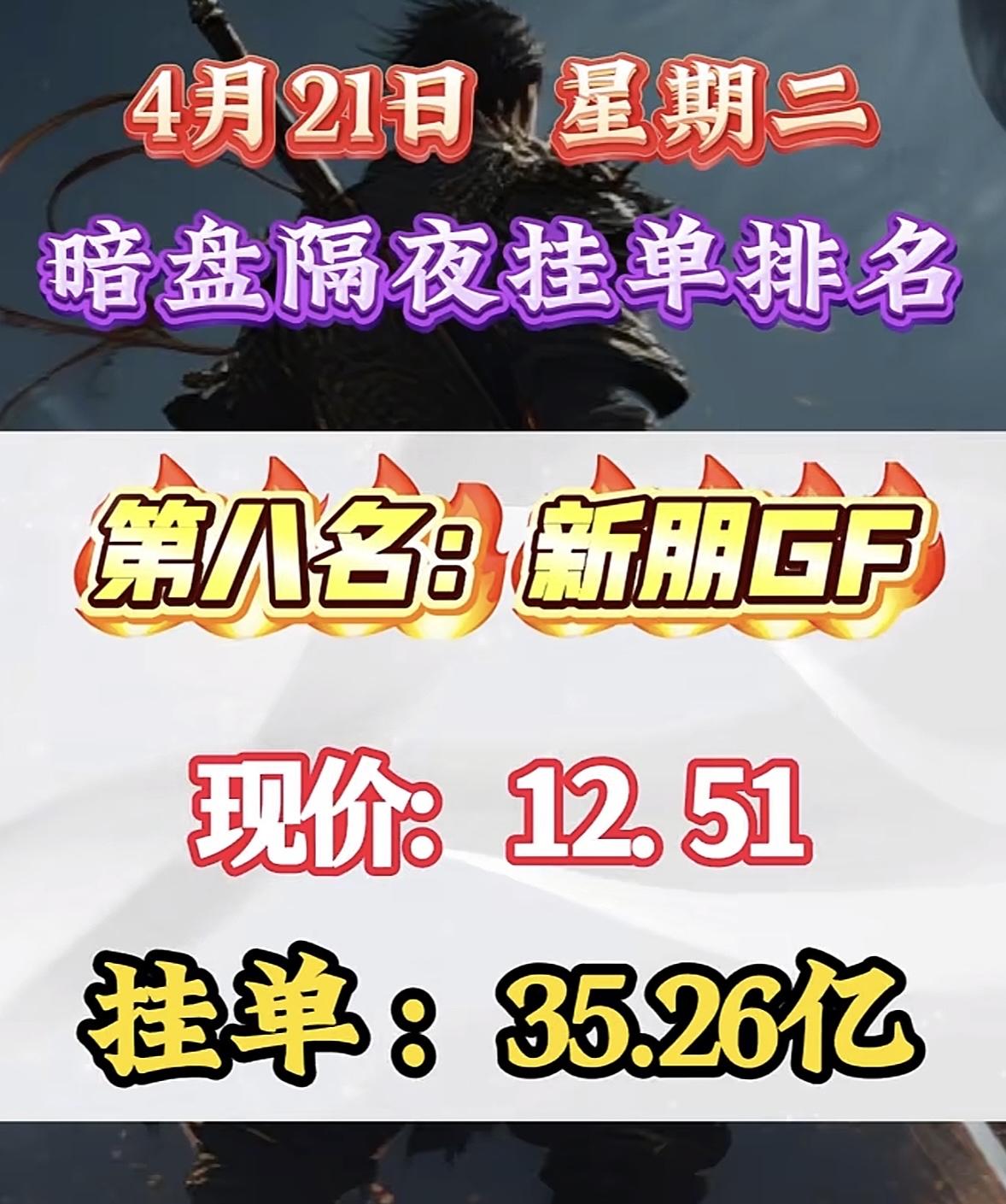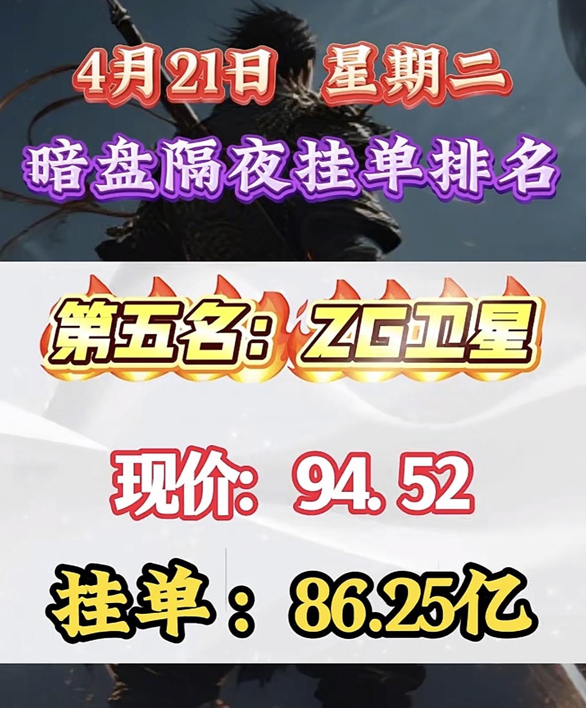 4月21日周二暗盘隔夜挂单排行榜出炉