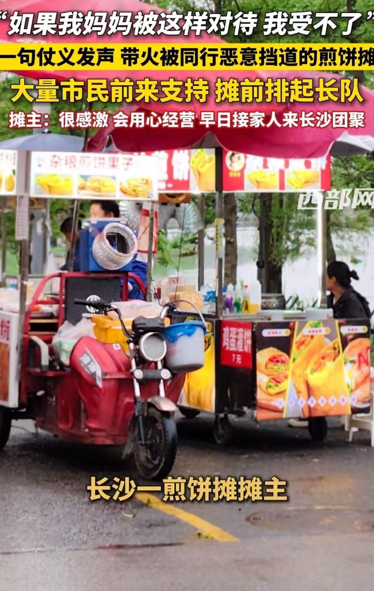 4月13号,长沙后湖夜市,夏大姐的煎饼摊前,突然多了辆男摊主的车,正对着她,挡得严严实实。
