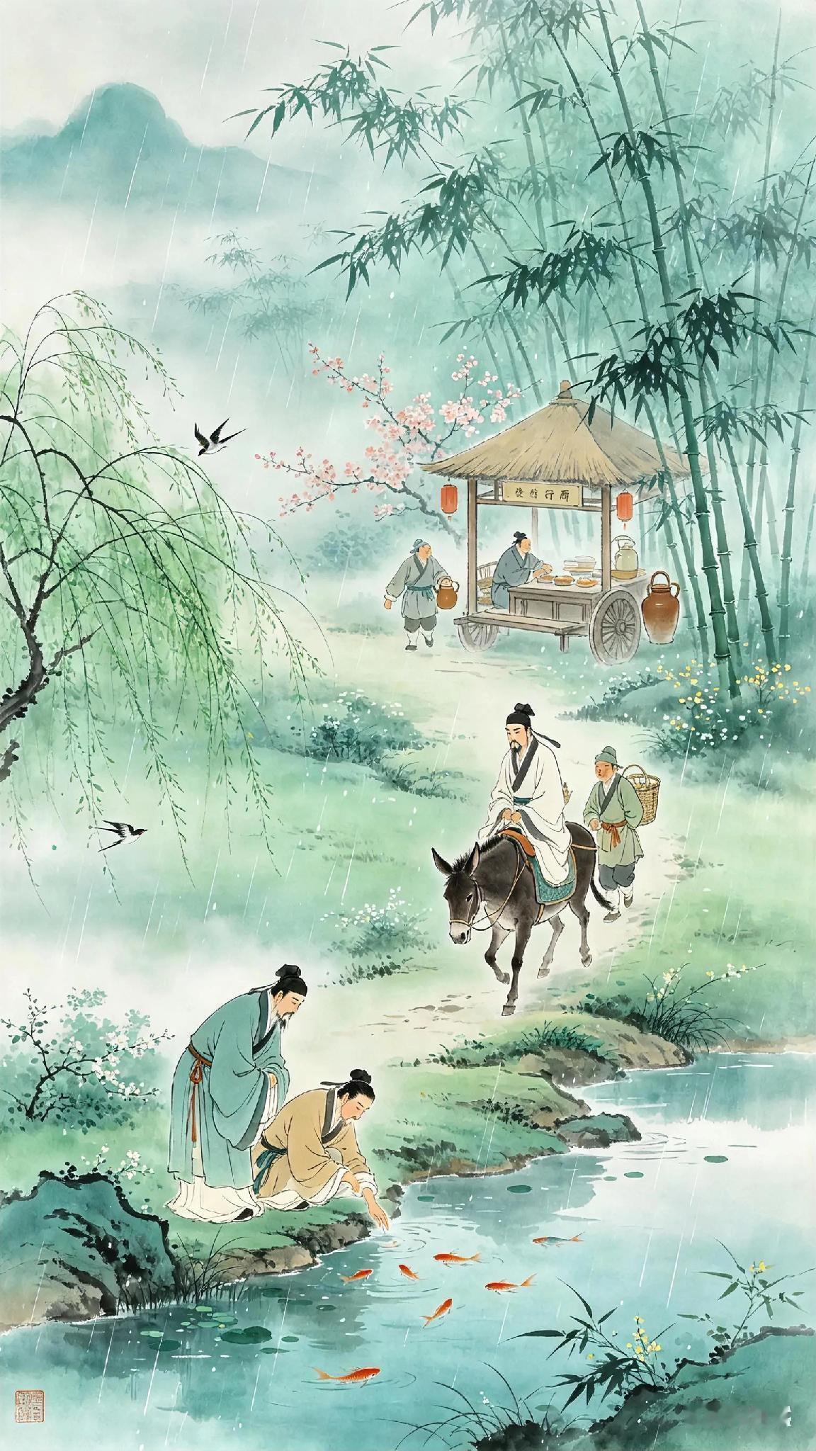 临水观鱼,
