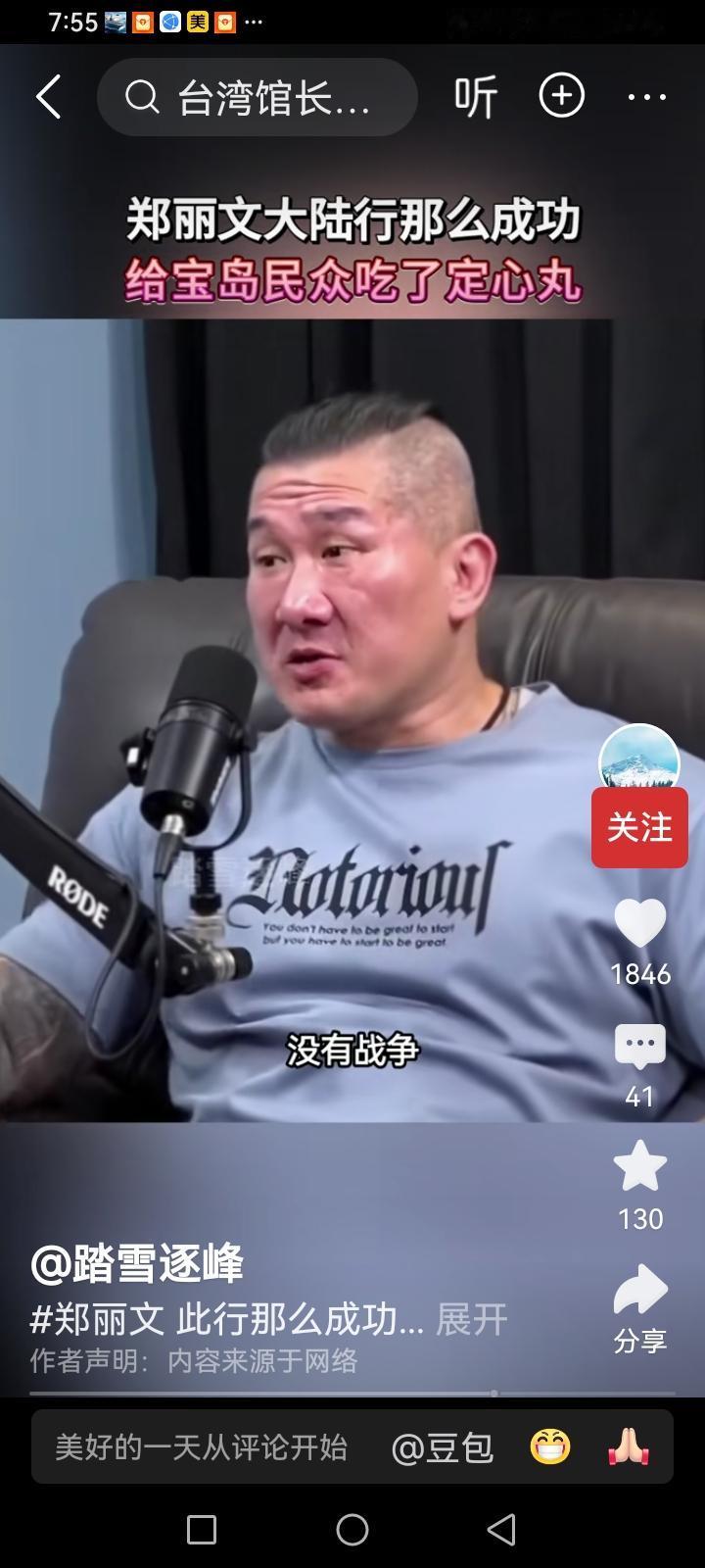 郑丽文上了馆长的节目,郑丽文说:“大陆很愿意放,可是台湾不要啊,所以只能等到2028了,如果2028国民党执政。一切就都正常了。我这次去,最起码让台湾人知道,如果2028政党轮替,就不会有战争,就会有和平。不然台湾人是不知道,大陆的态度。”