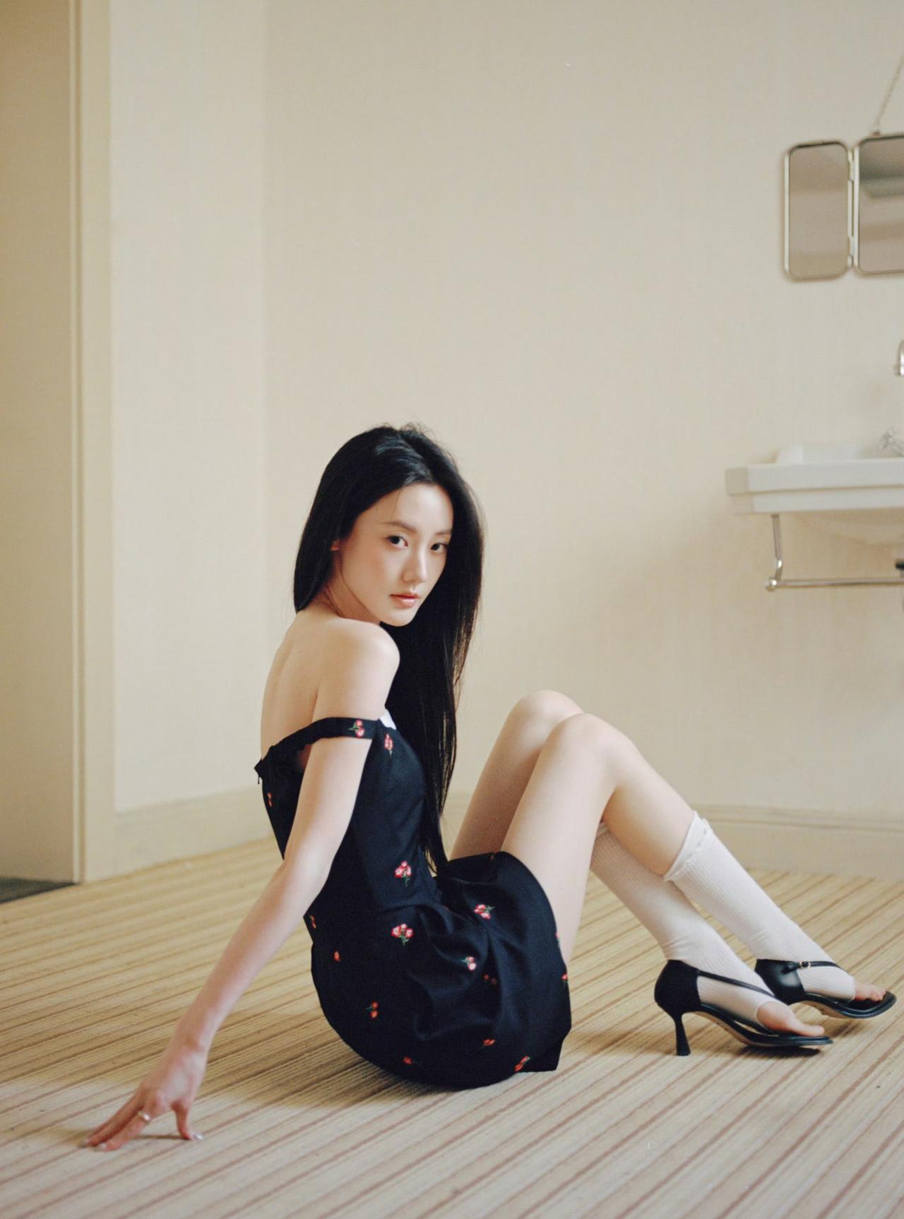 黑色碎花吊带裙搭配白色堆堆袜,自带纯欲氛围感,一半法式优雅,一半韩系甜妹,OOTD请查收。[灵光一闪]