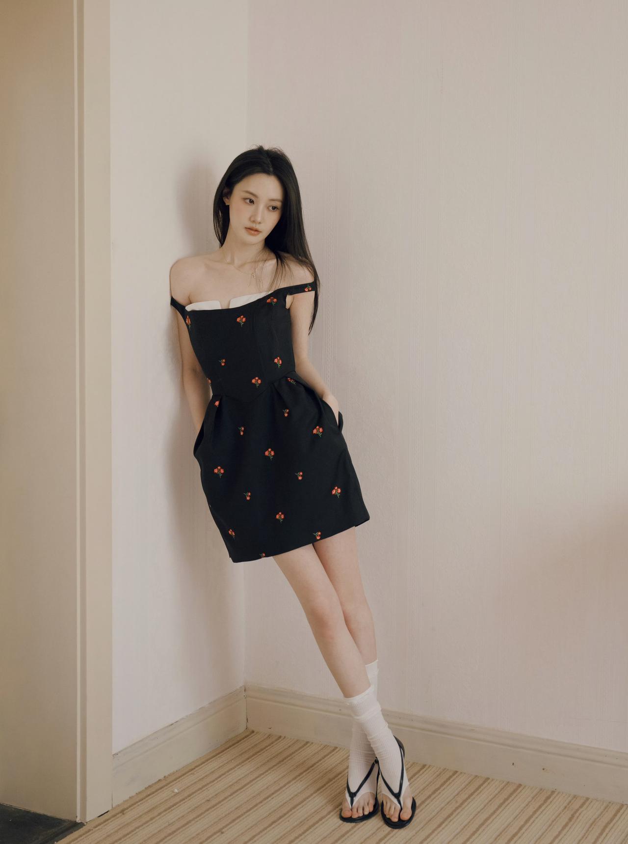 黑色碎花吊带裙搭配白色堆堆袜,自带纯欲氛围感,一半法式优雅,一半韩系甜妹,OOT