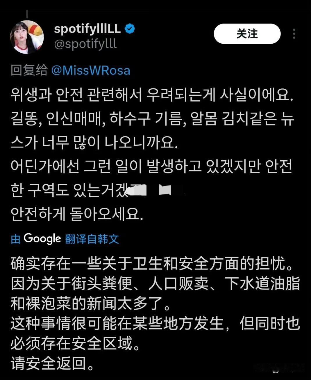 这些评论说她不是韩国人什么的……她只是来旅行的。