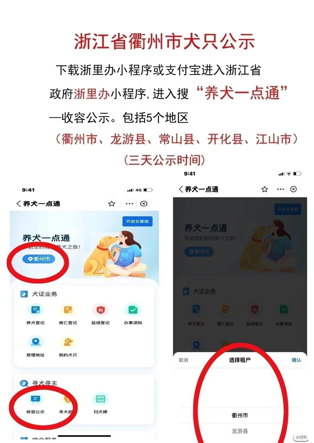 转自浙江浙里办小程序,衢州"养犬一点通"