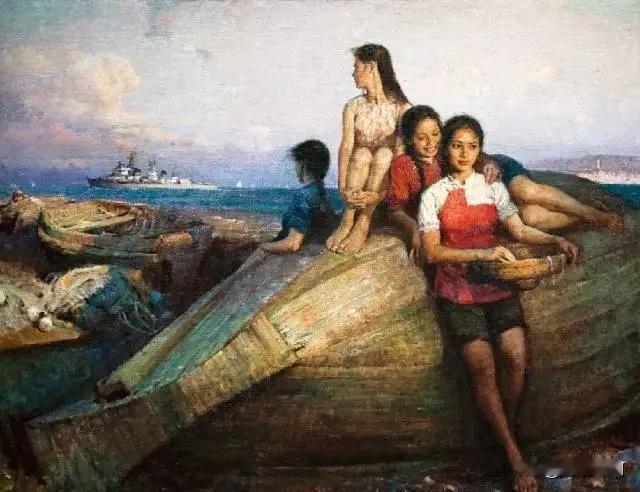 《海边絮语》创作于1984年,画中人物据说其中一位是他的女朋友,后来成为了他的夫人。