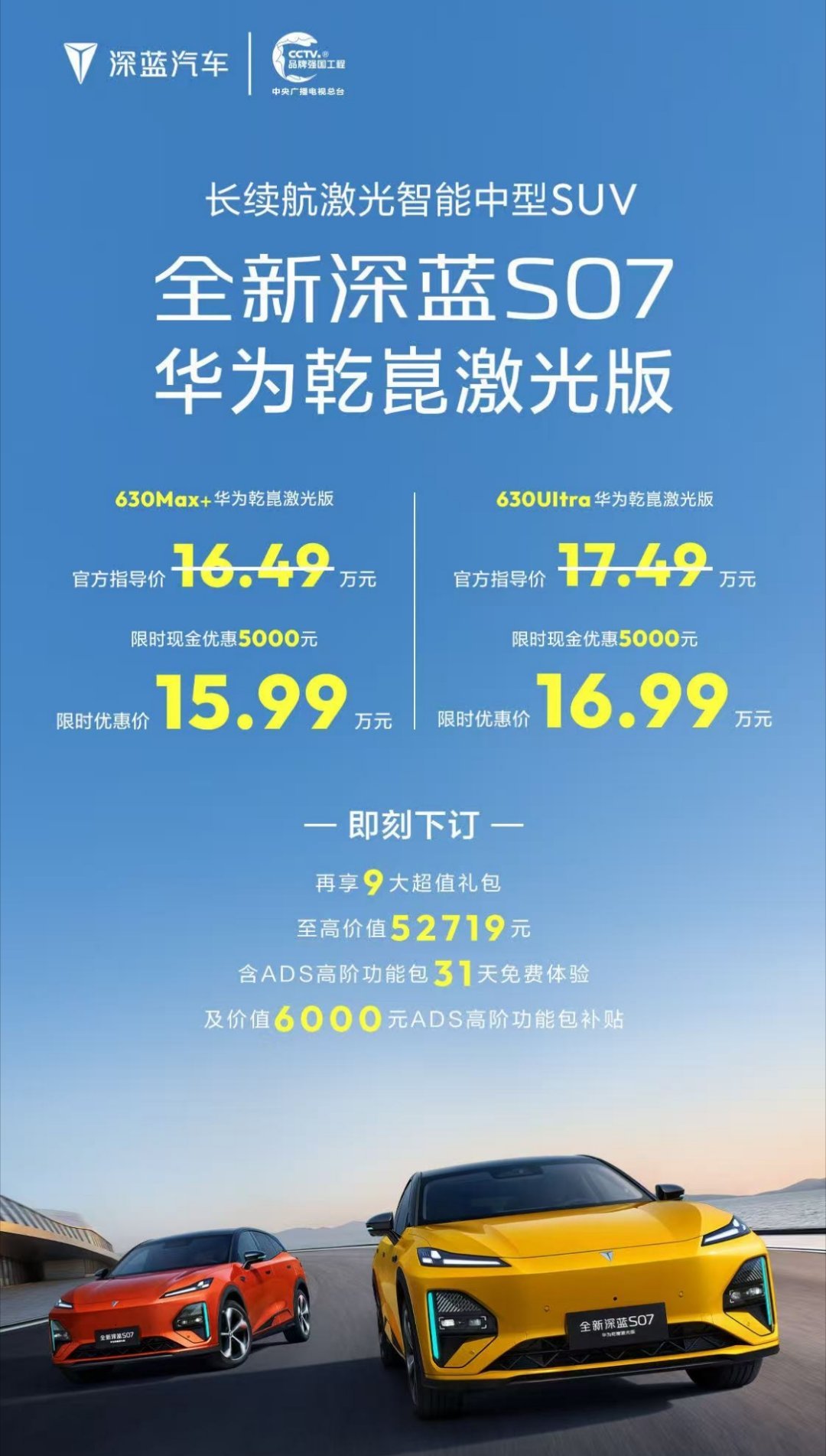 深蓝新车全新深蓝S07华为乾崑激光版正式发布,各方面配置拉满了,上市即交付,限时