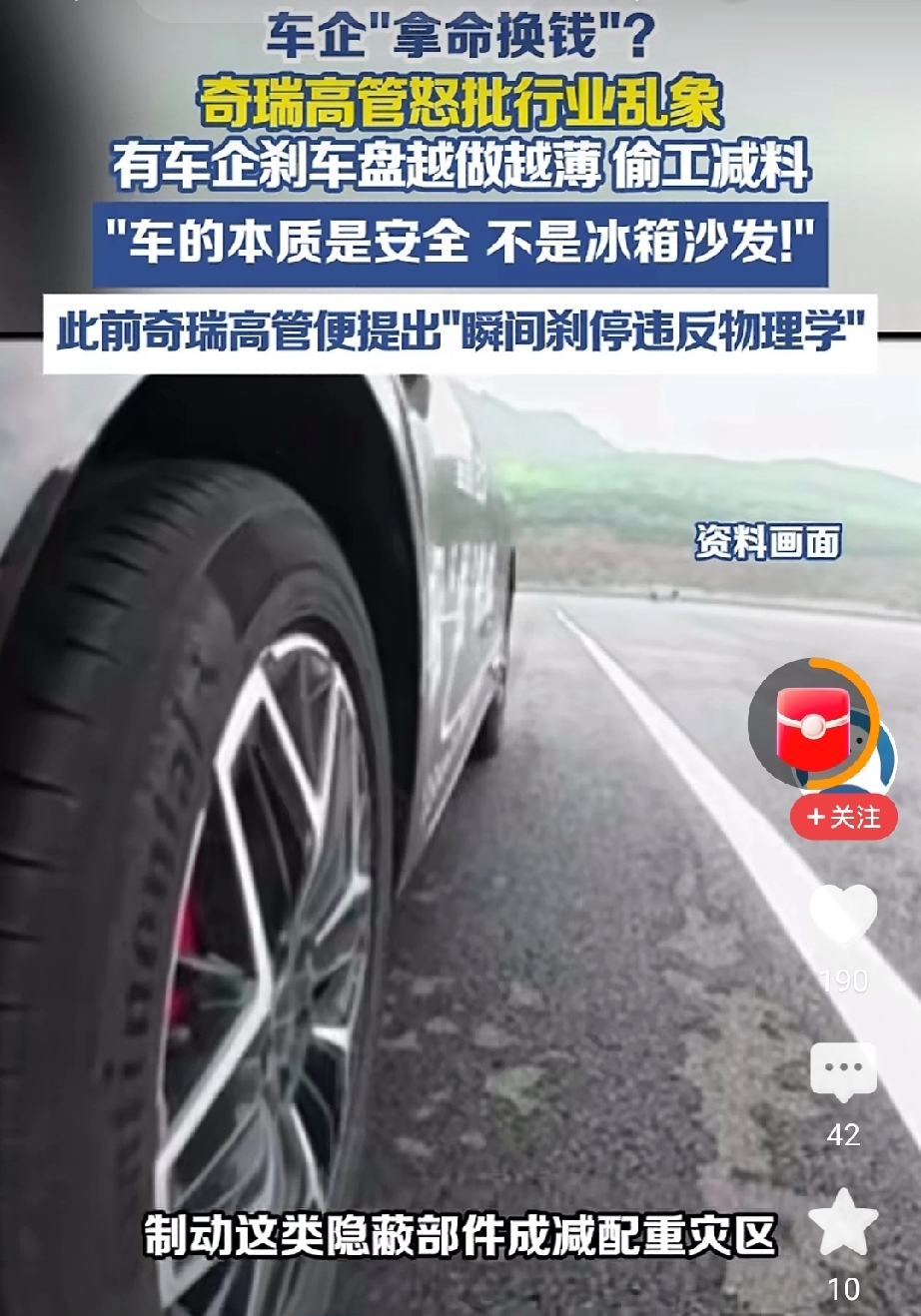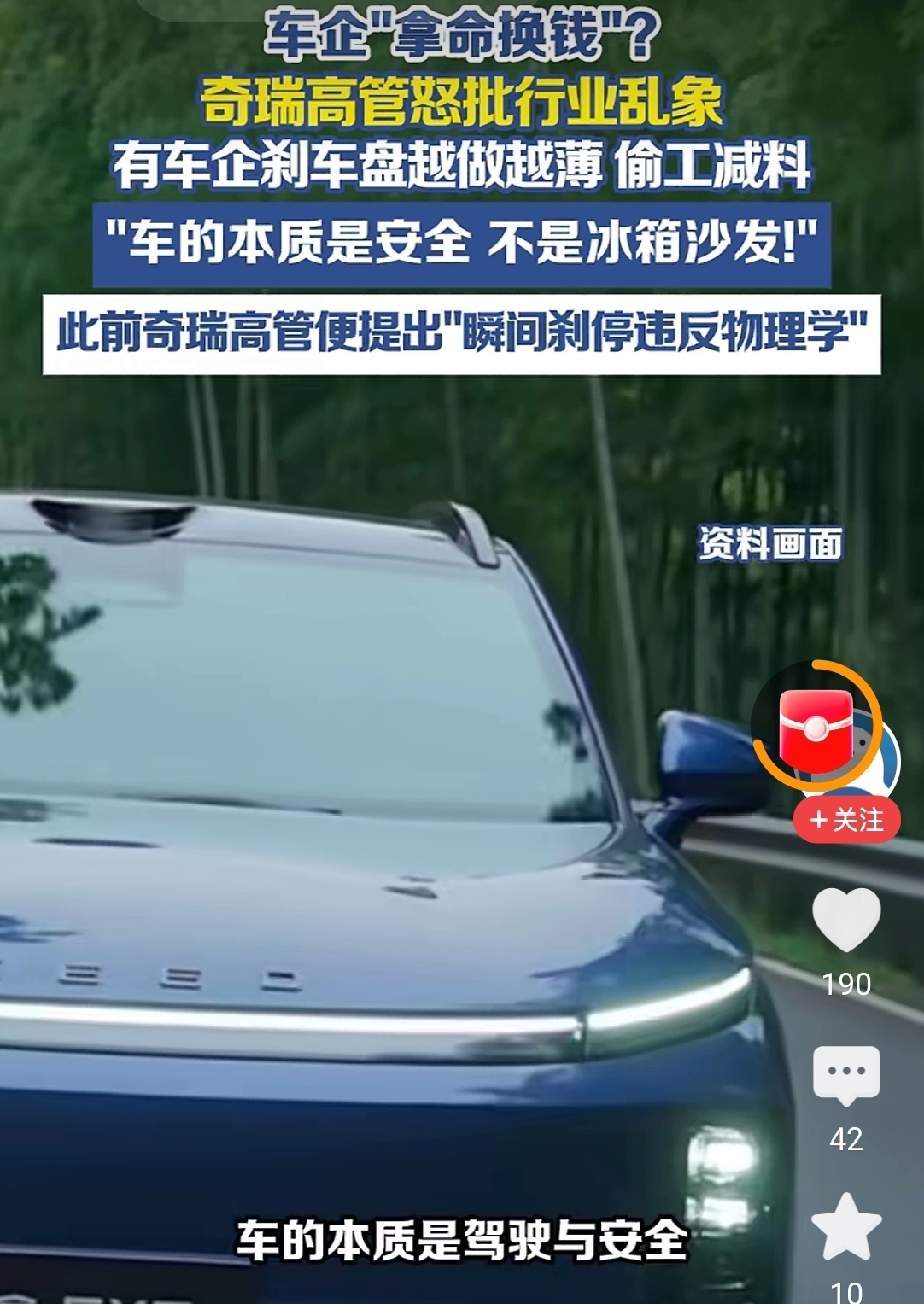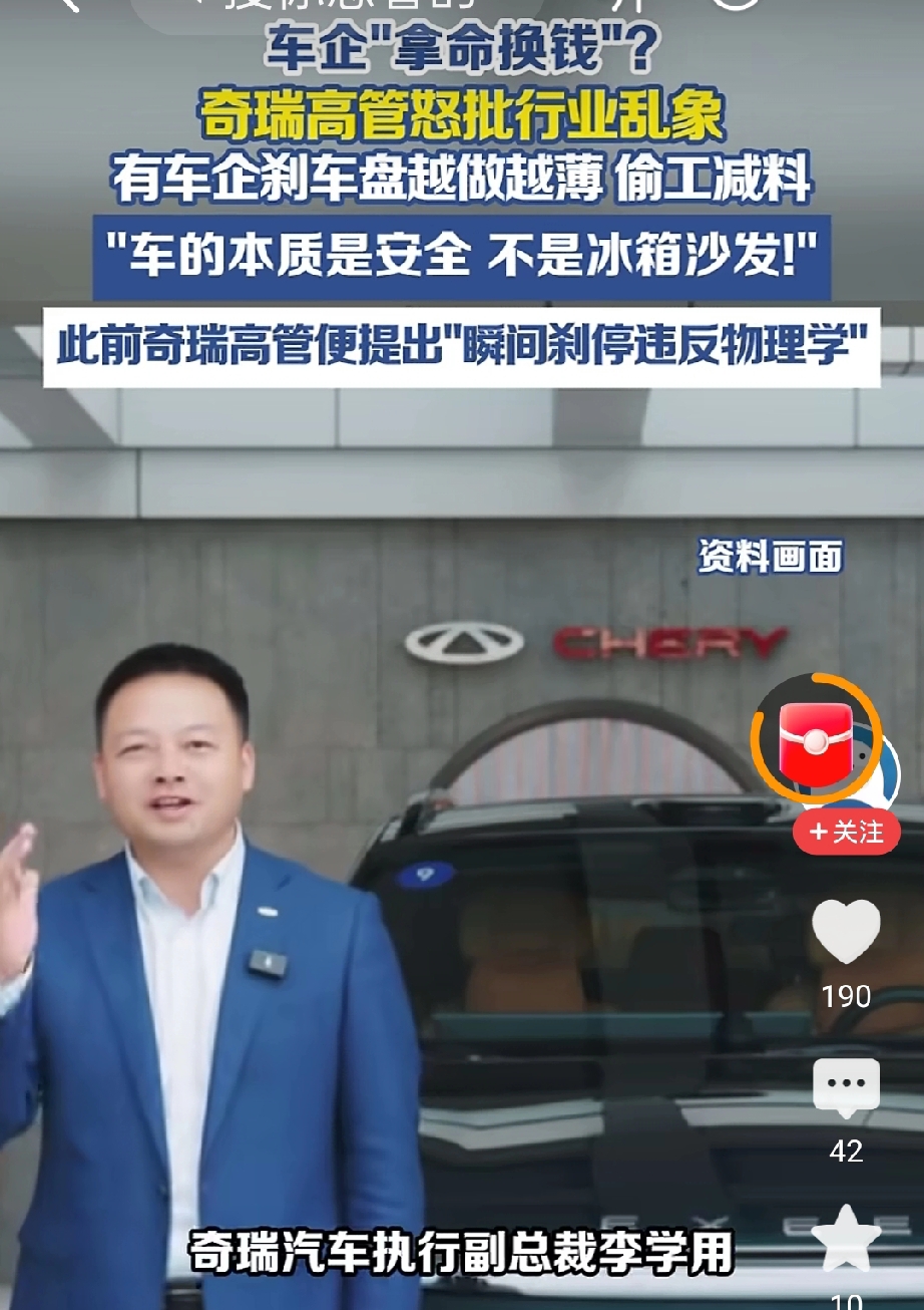 星途EX7上市现场,李学用炮轰行业怪象:车企为了成本压缩,刹车盘越做越小、越做越薄,沉迷冰箱沙发等表面配置,却丢掉了驾驶、安全与操控的核心。汽车回归本质,从来不是靠堆舒适配置,而是守住安全与驾控底线。
