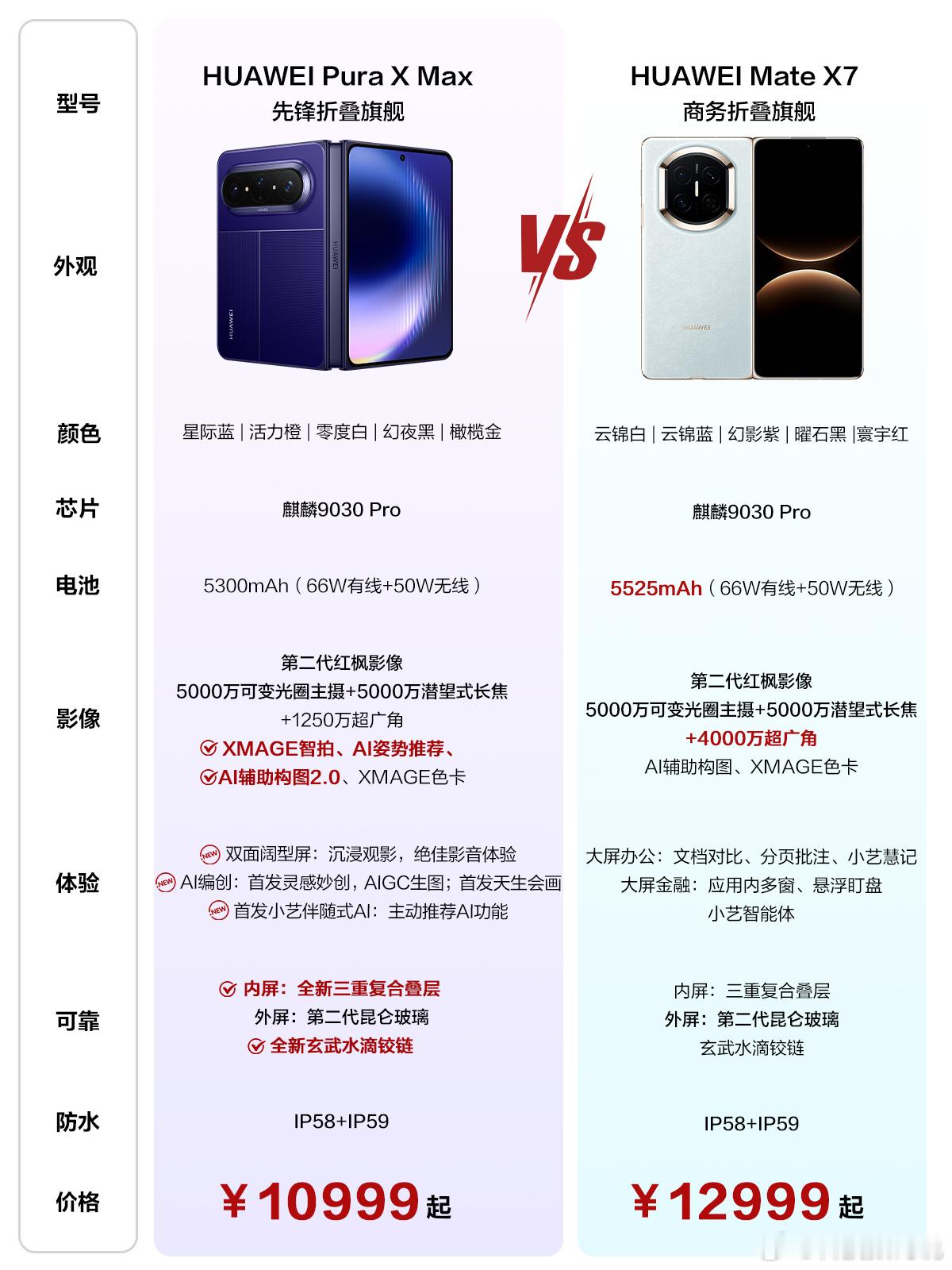 华为PuraXMax价格10999元起,真的很劲爆了。首先大家看看今年内存涨价多离谱,大家新机涨价多猛就,但华为没涨。而且对比华为Mate X7,你看这配置有多强,现在大阔折叠和大折叠就是比例不同,适合不同人,都很强,喜欢的冲就对了,你喜欢哪个?